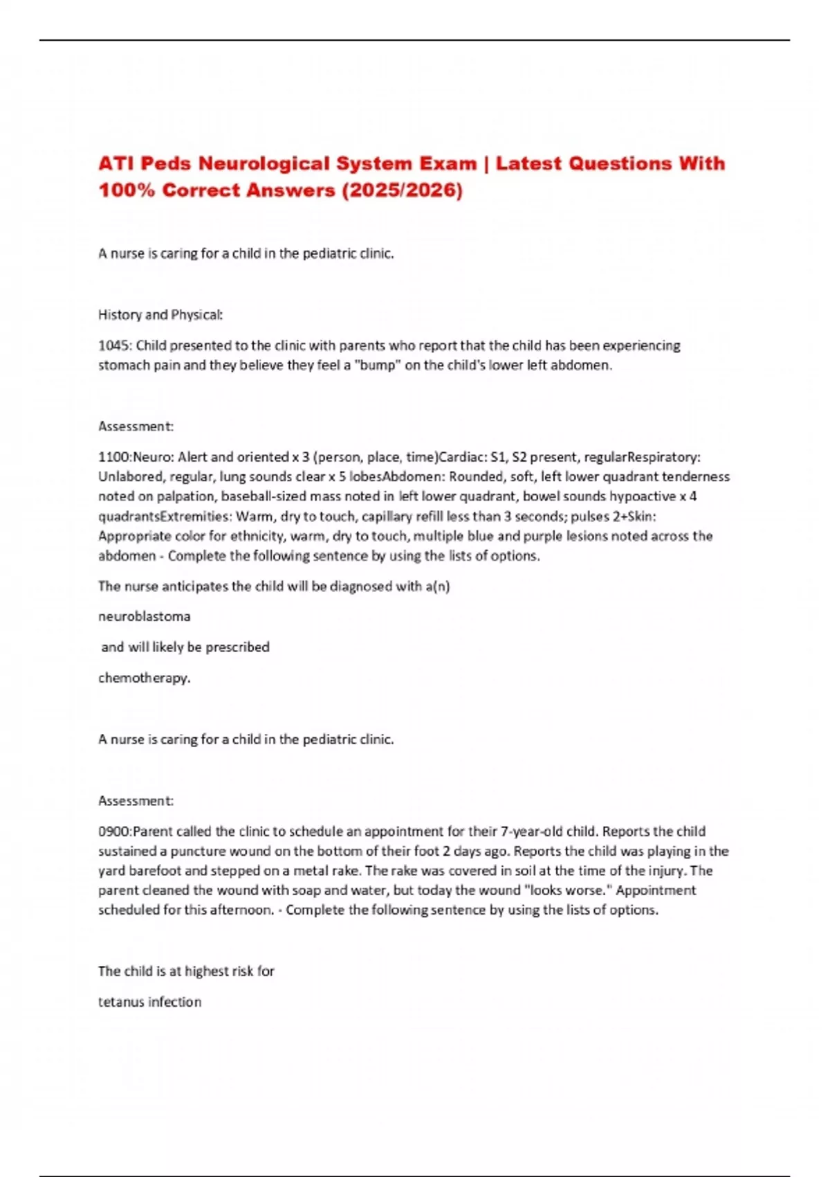 ATI Peds Neurological System Exam | Latest Questions With 100% Correct Answers (2025/2026)