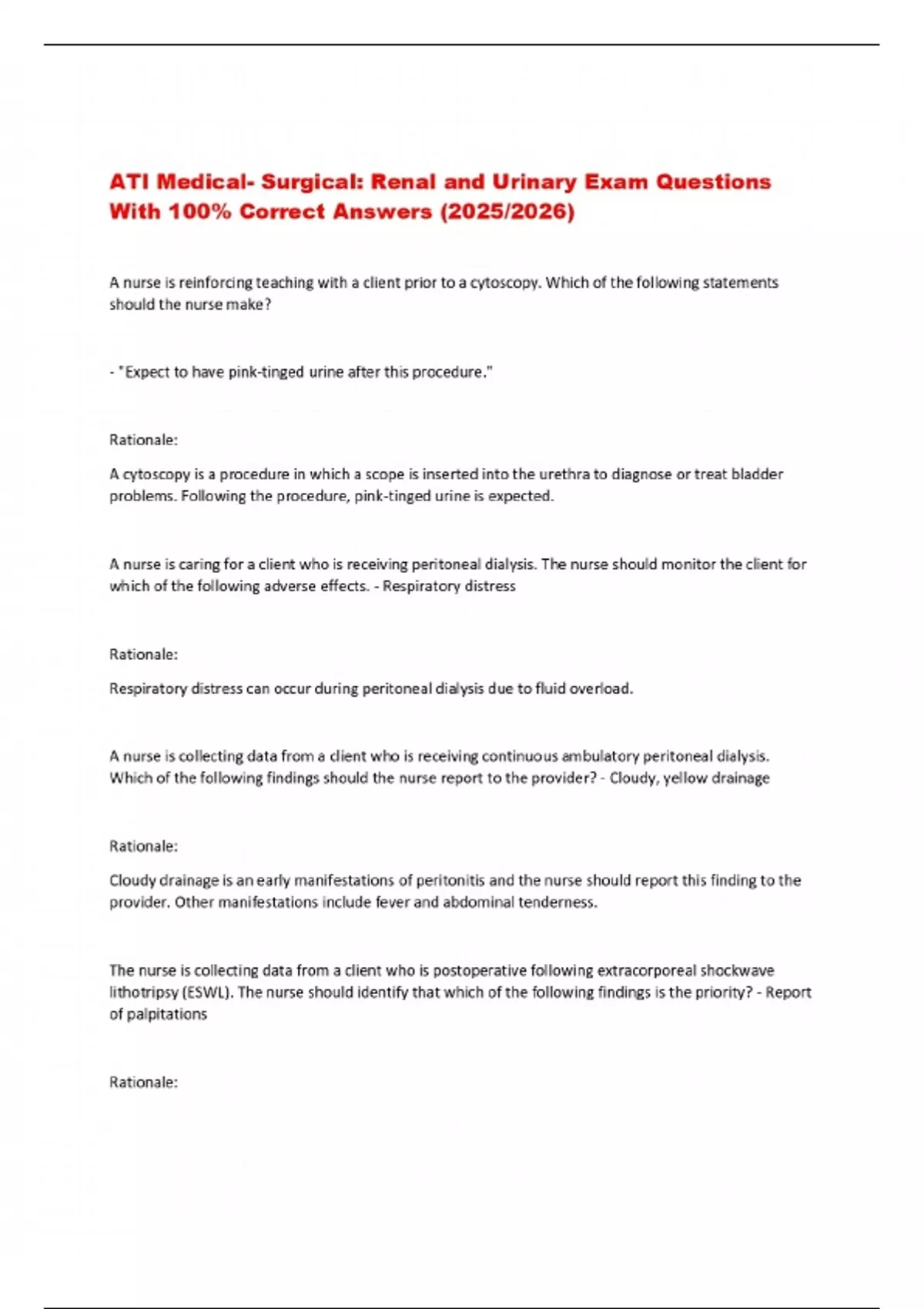 ATI Medical- Surgical: Renal and Urinary Exam Questions With 100% Correct Answers (2025/2026)