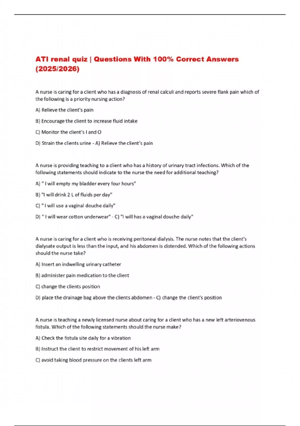 ATI renal quiz | Questions With 100% Correct Answers (2025/2026)