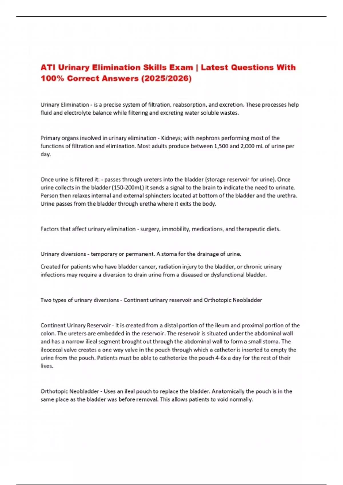 ATI Urinary Elimination Skills Exam | Latest Questions With 100% Correct Answers (2025/2026)