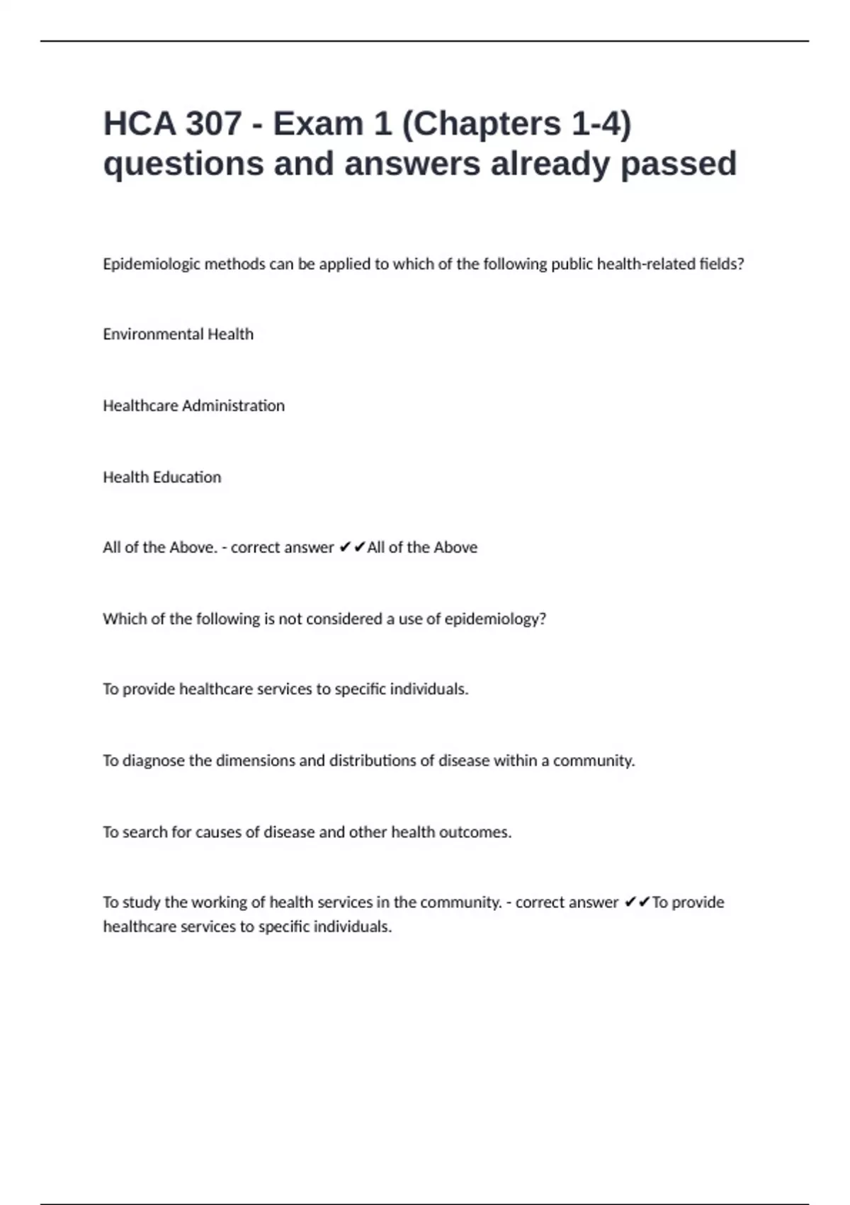 To study the working of health services in the community. - correct answer ✔✔To provide