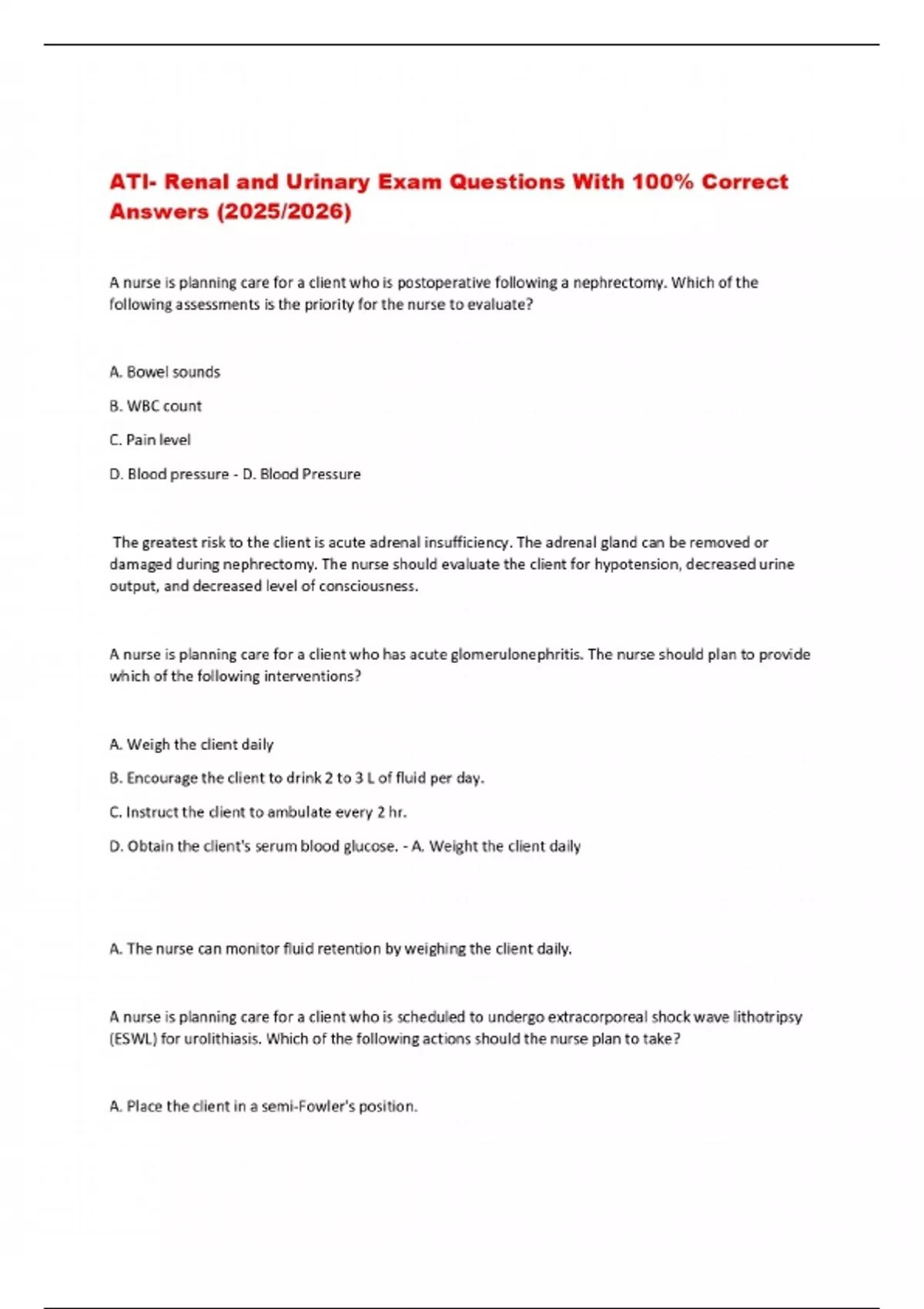 ATI- Renal and Urinary Exam Questions With 100% Correct Answers (2025/2026)