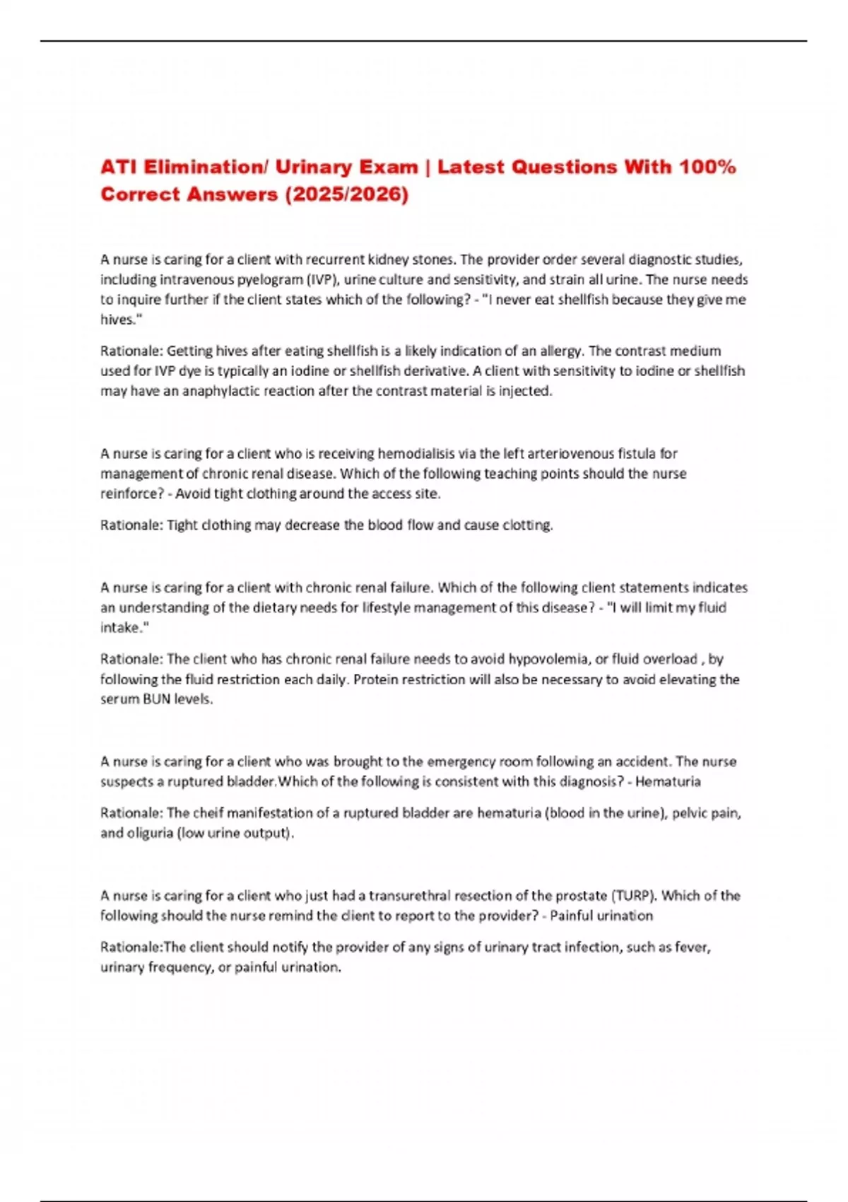 ati elimination urinary exam latest questions w