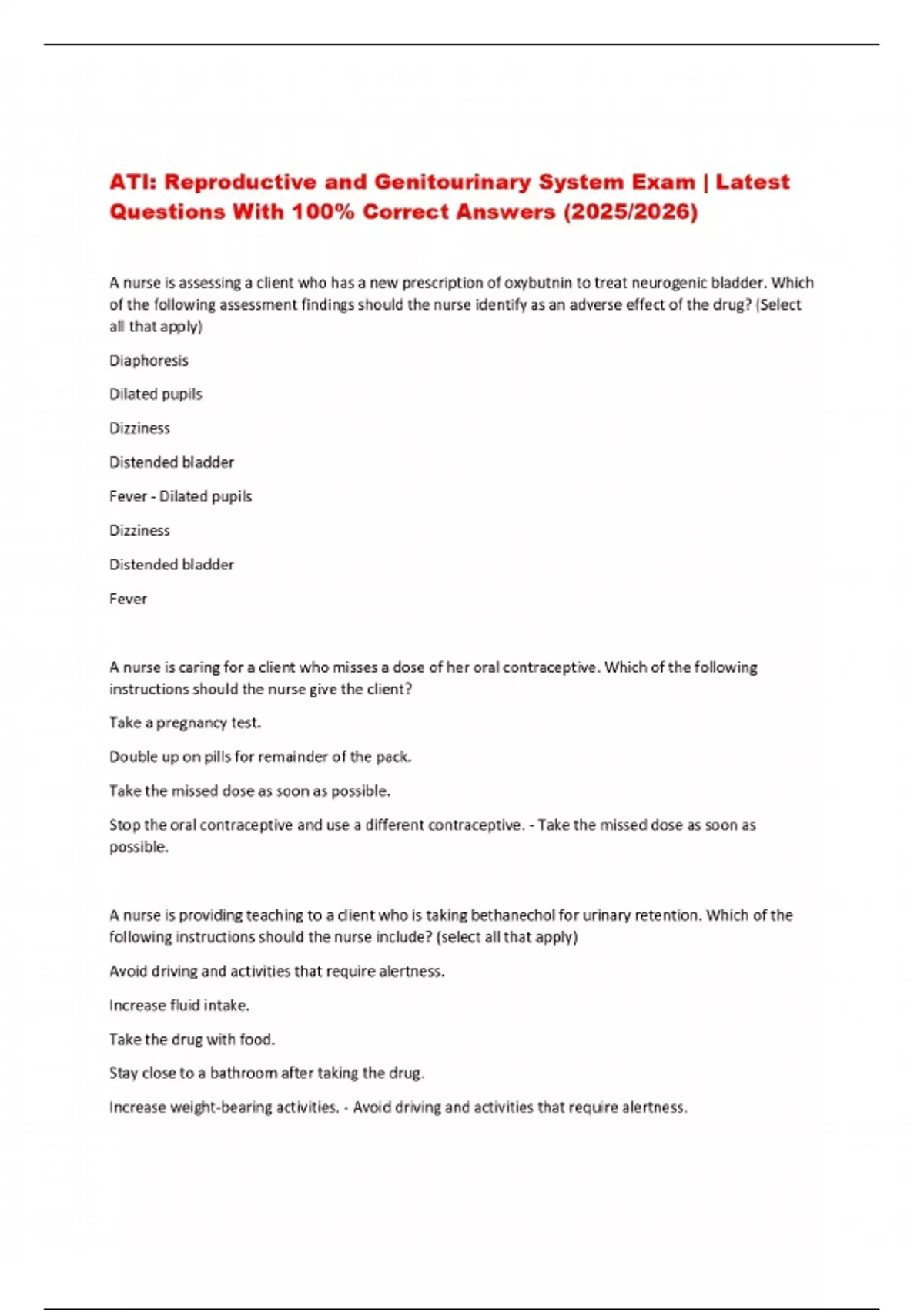 ATI: Reproductive and Genitourinary System Exam | Latest Questions With 100% Correct Answers (2025/2026)