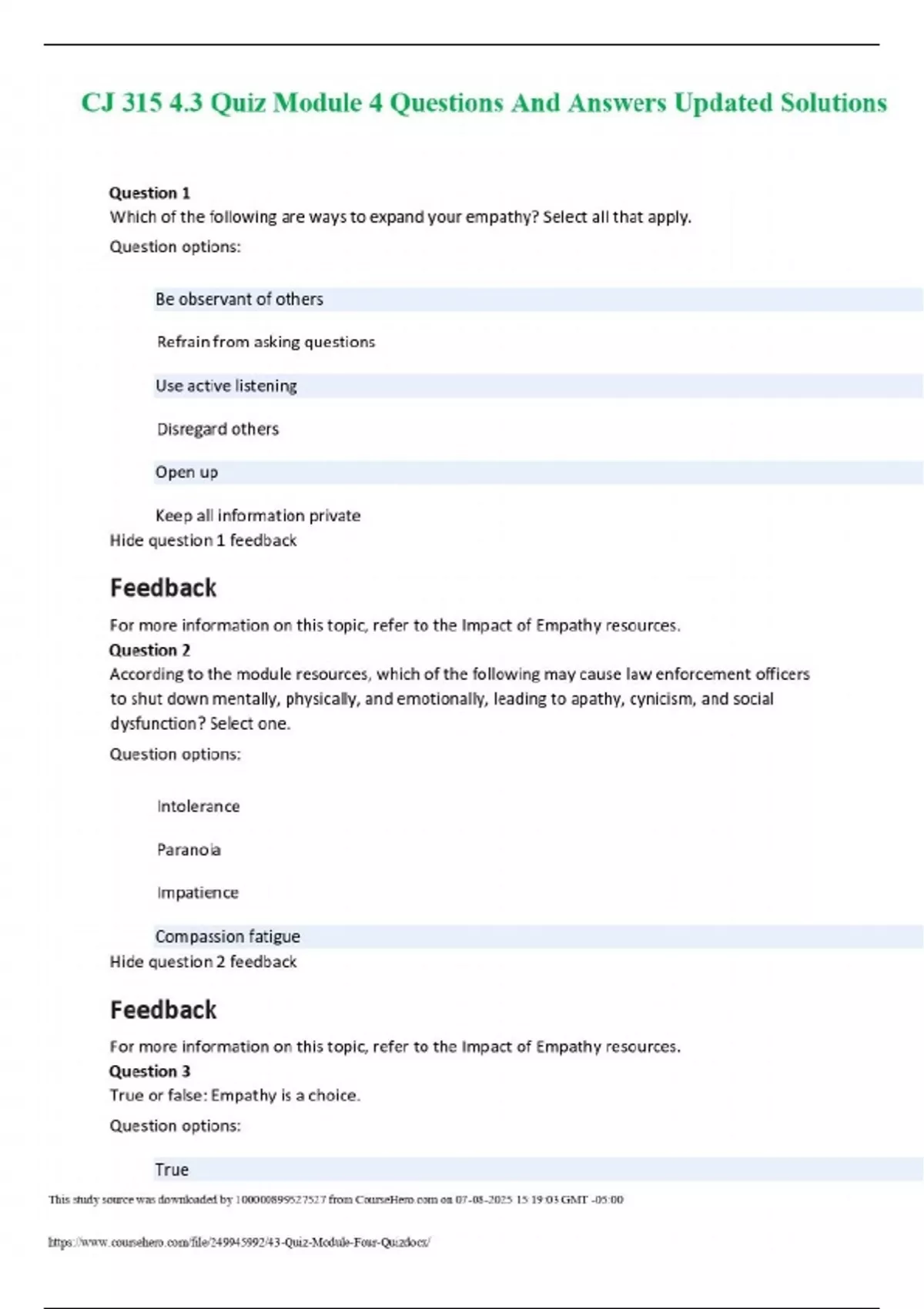 CJ 315 4.3 Quiz Module 4 Questions And Answers Updated Solutions
