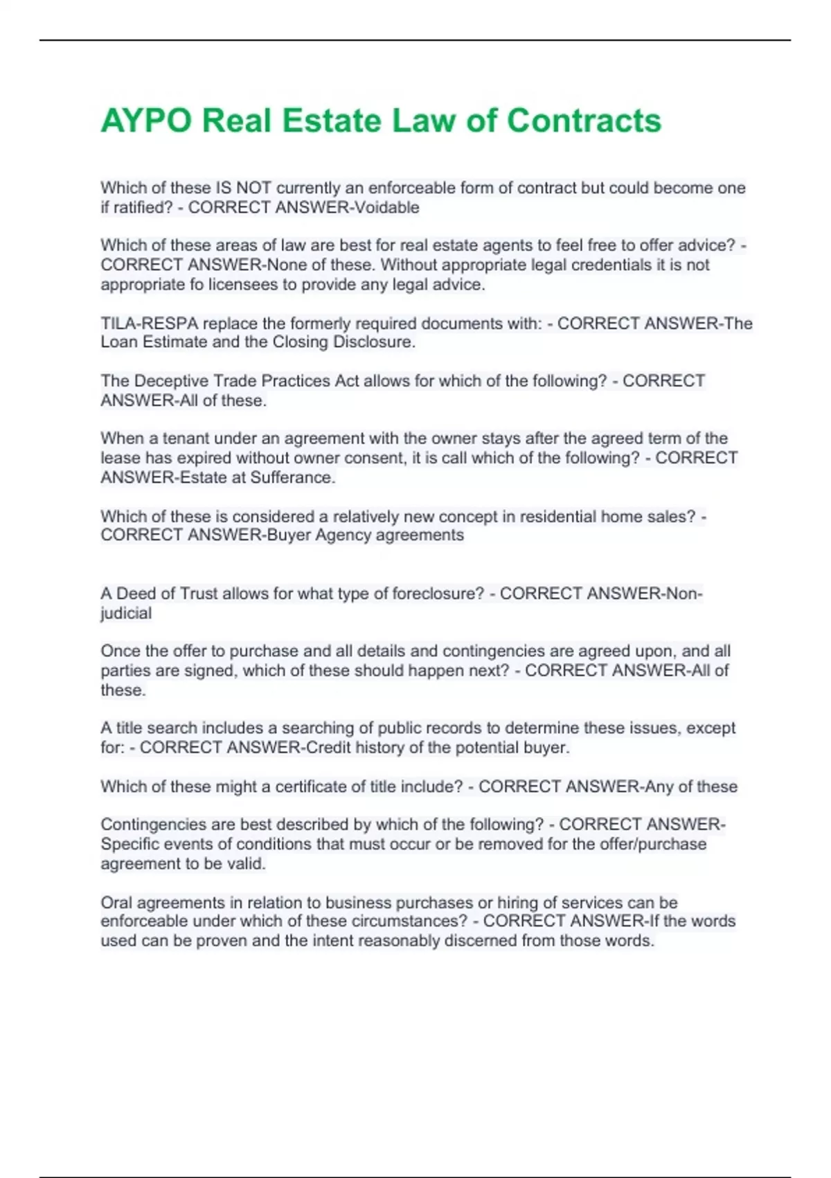 CORRECT ANSWER-Buyer Agency agreements
