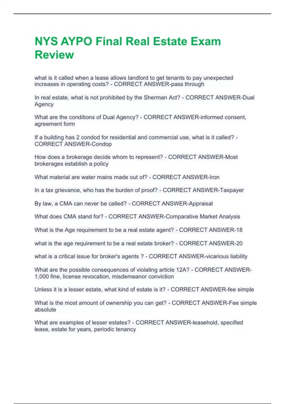 Unless it is a lesser estate, what kind of estate is it? - CORRECT ANSWER-fee simple