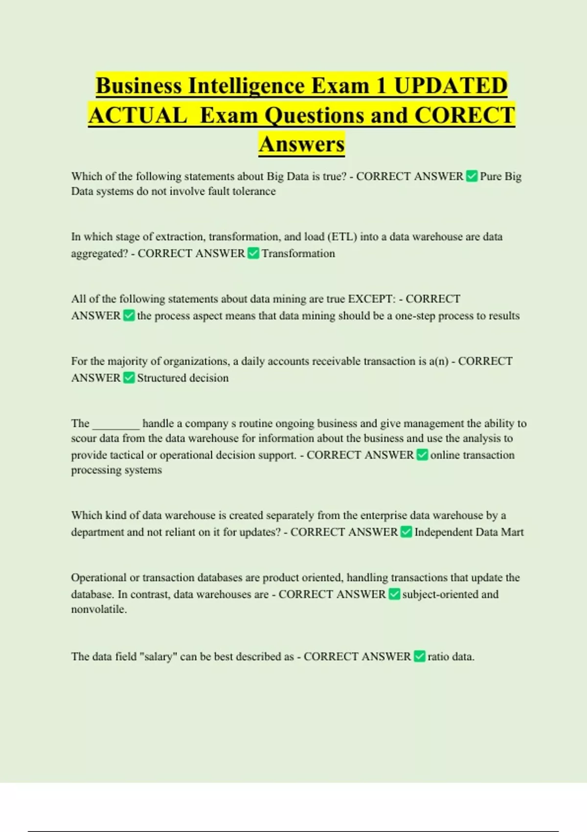 ACTUAL Exam Questions and CORECT
