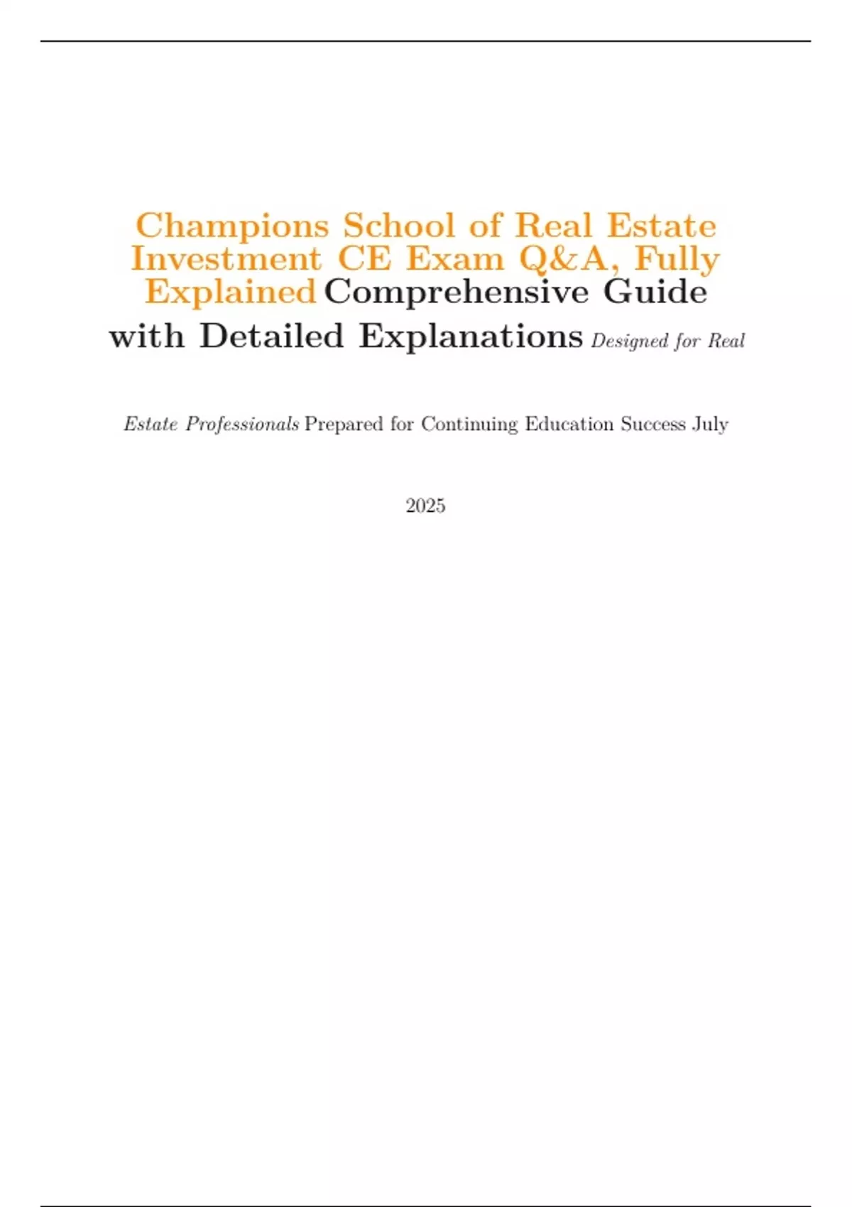 School of Real Estate Investment CE exam. Each explanation provides context, practical