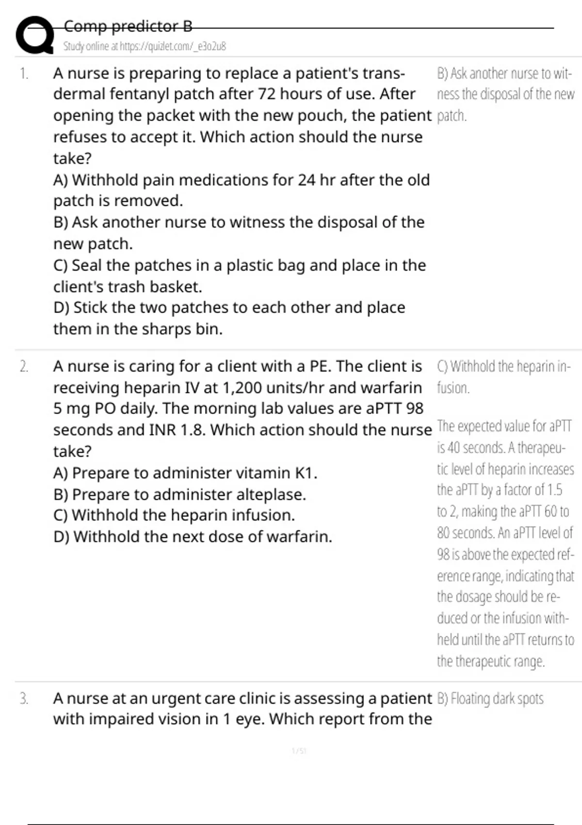 1. A nurse is preparing to replace a patient's trans- B) Ask another nurse to wit-