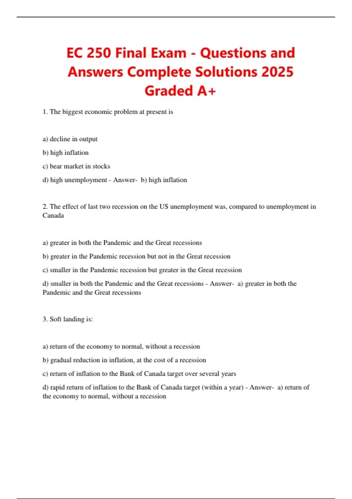 EC 250 Final Exam - Questions and