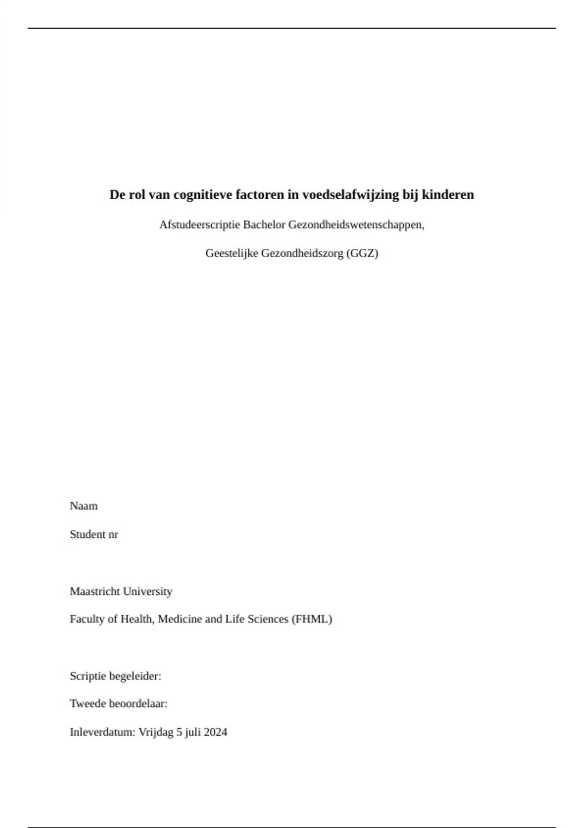 GGZ3026 BACHELORSCRIPTIE: Cognitieve factoren bij voedselafwijzing