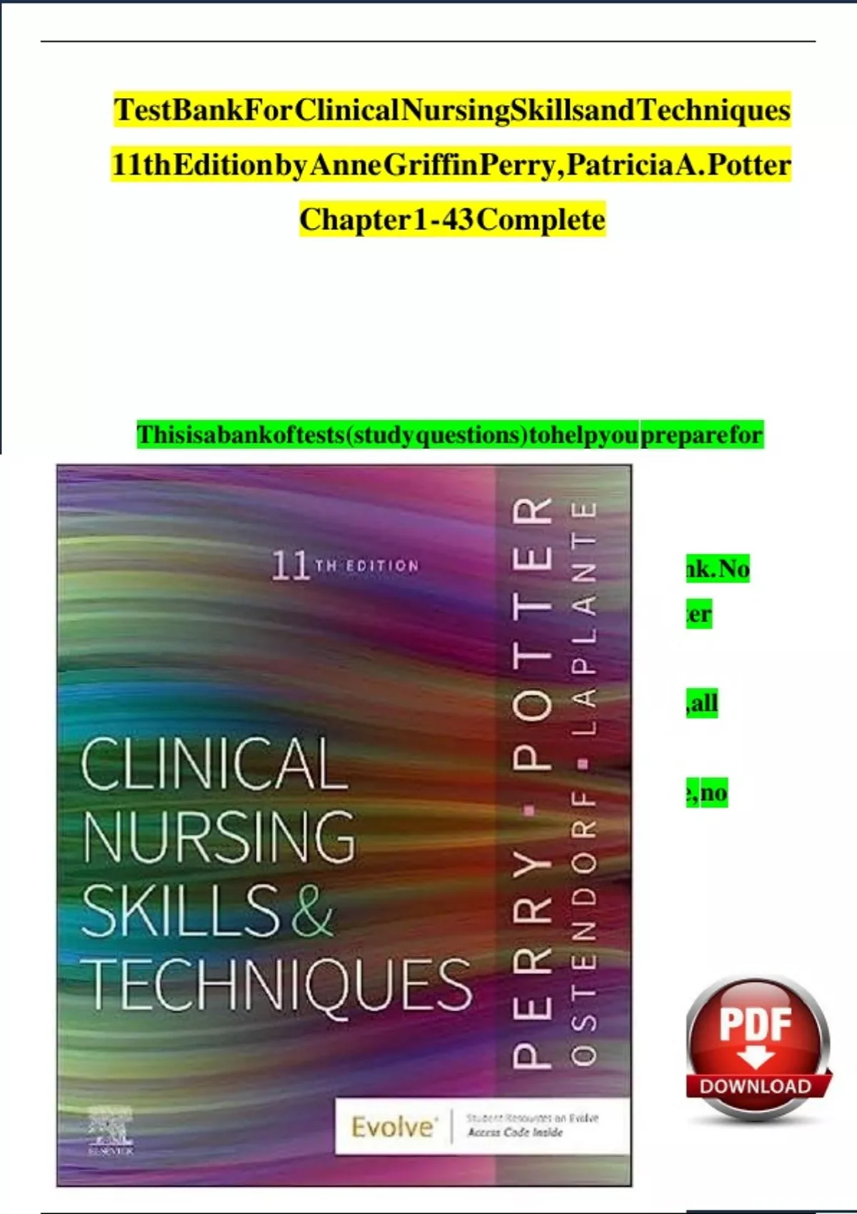,TestBankForClinicalNursing SkillsandTechniques 11thEditionby Anne GriffinPerry,