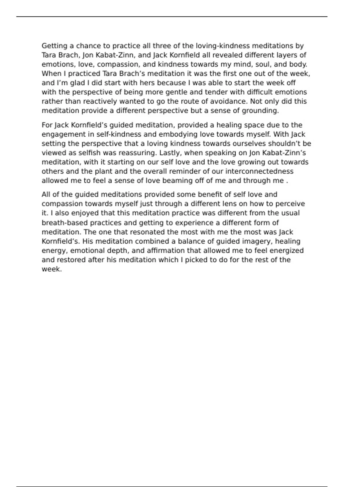 viewed as selfish was reassuring. Lastly, when speaking on Jon Kabat-Zinn’s