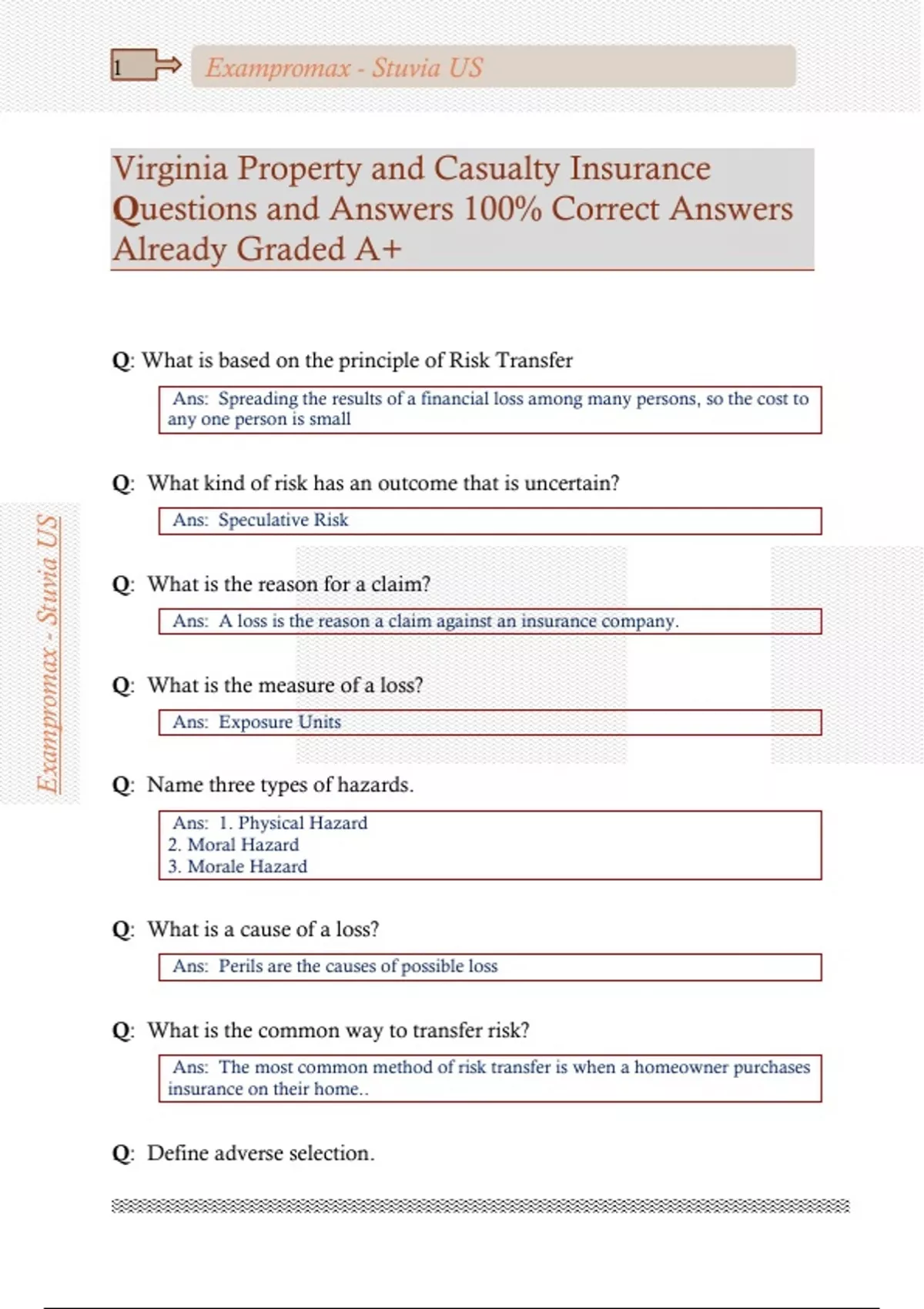 Ans: The most common method of risk transfer is when a homeowner purchases