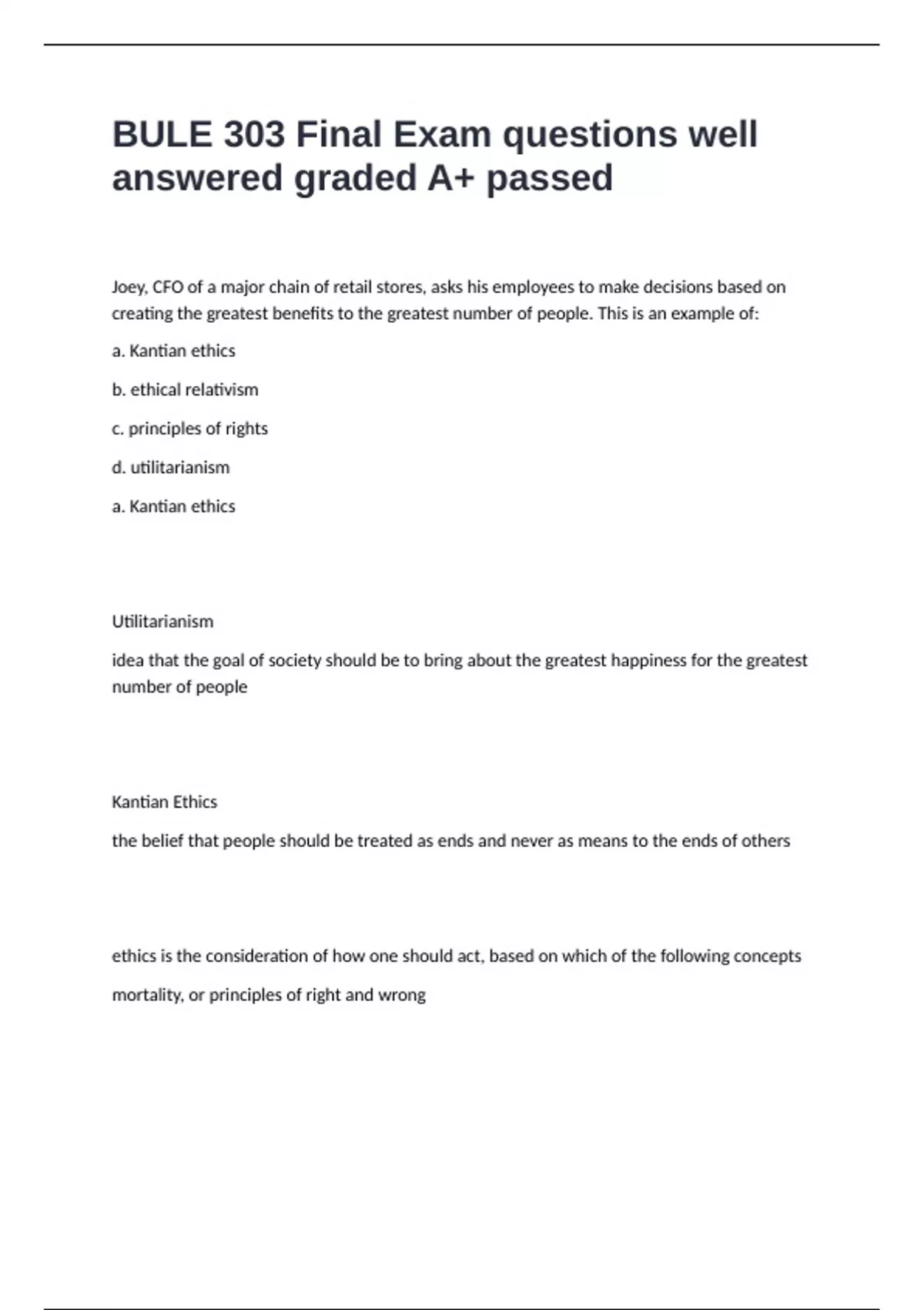 BULE 303 Final Exam questions well answered graded A+ passed