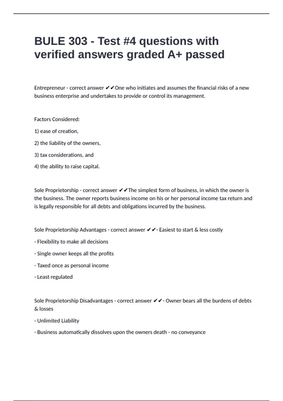 BULE 303 - Test #4 questions with verified answers graded A+ passed