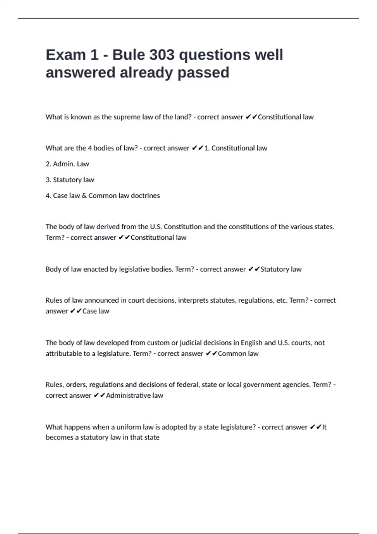 answer ✔✔Case law