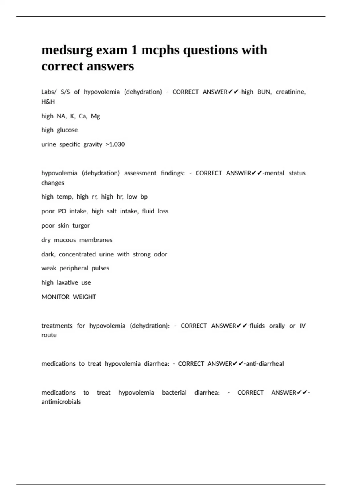 treatments ||for ||hypovolemia ||(dehydration): ||- ||CORRECT ||ANSWER✔✔-fluids ||orally ||or ||IV ||