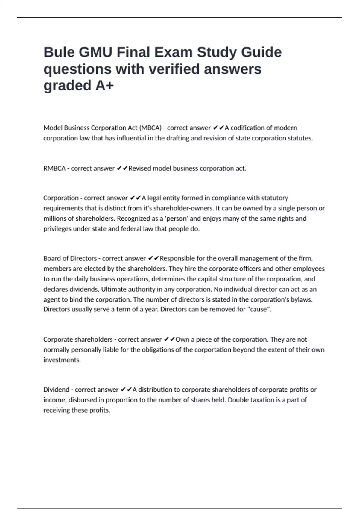 Bule GMU Final Exam Study Guide questions with verified answers graded A