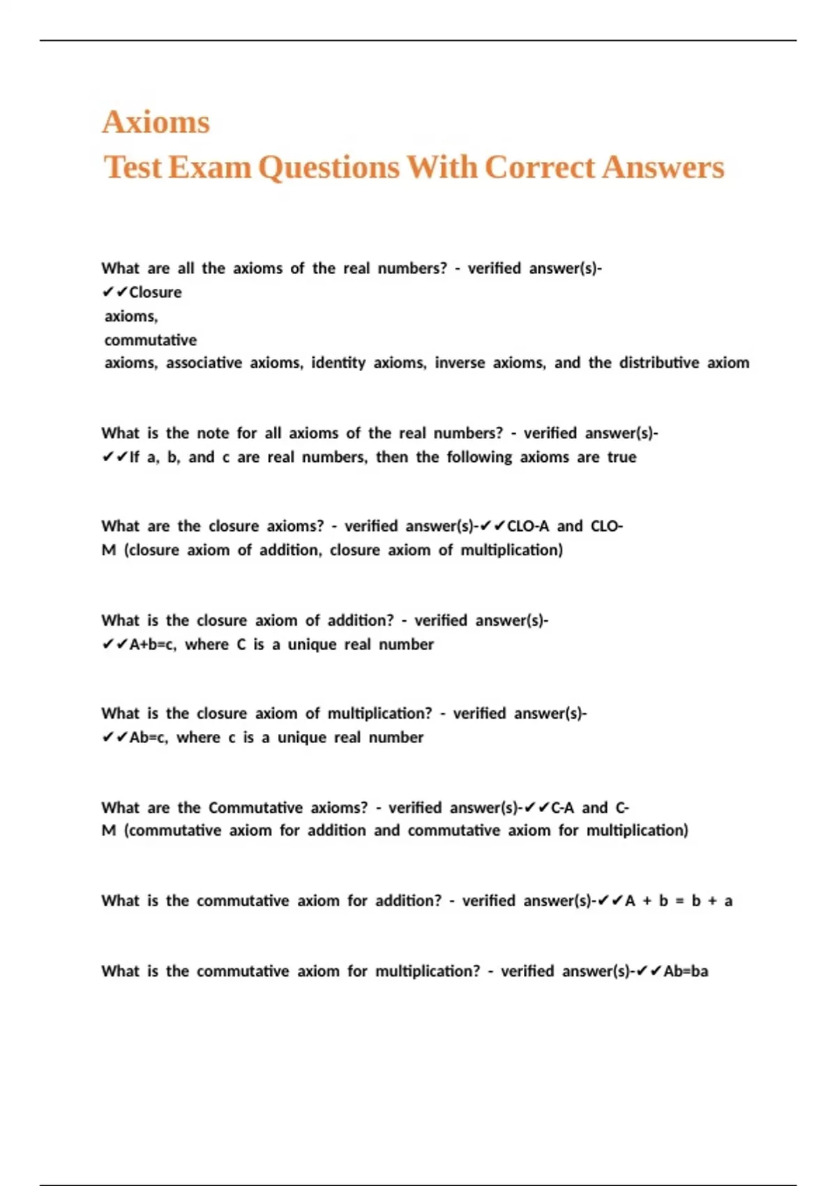 Axioms Test Exam Questions With Correct Answers