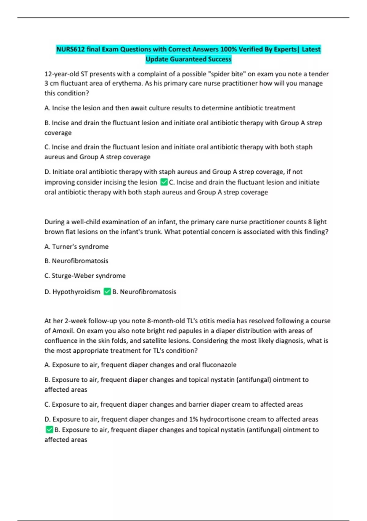 NURS612 final Exam Questions with Correct Answers 100% Verified By Experts| Latest