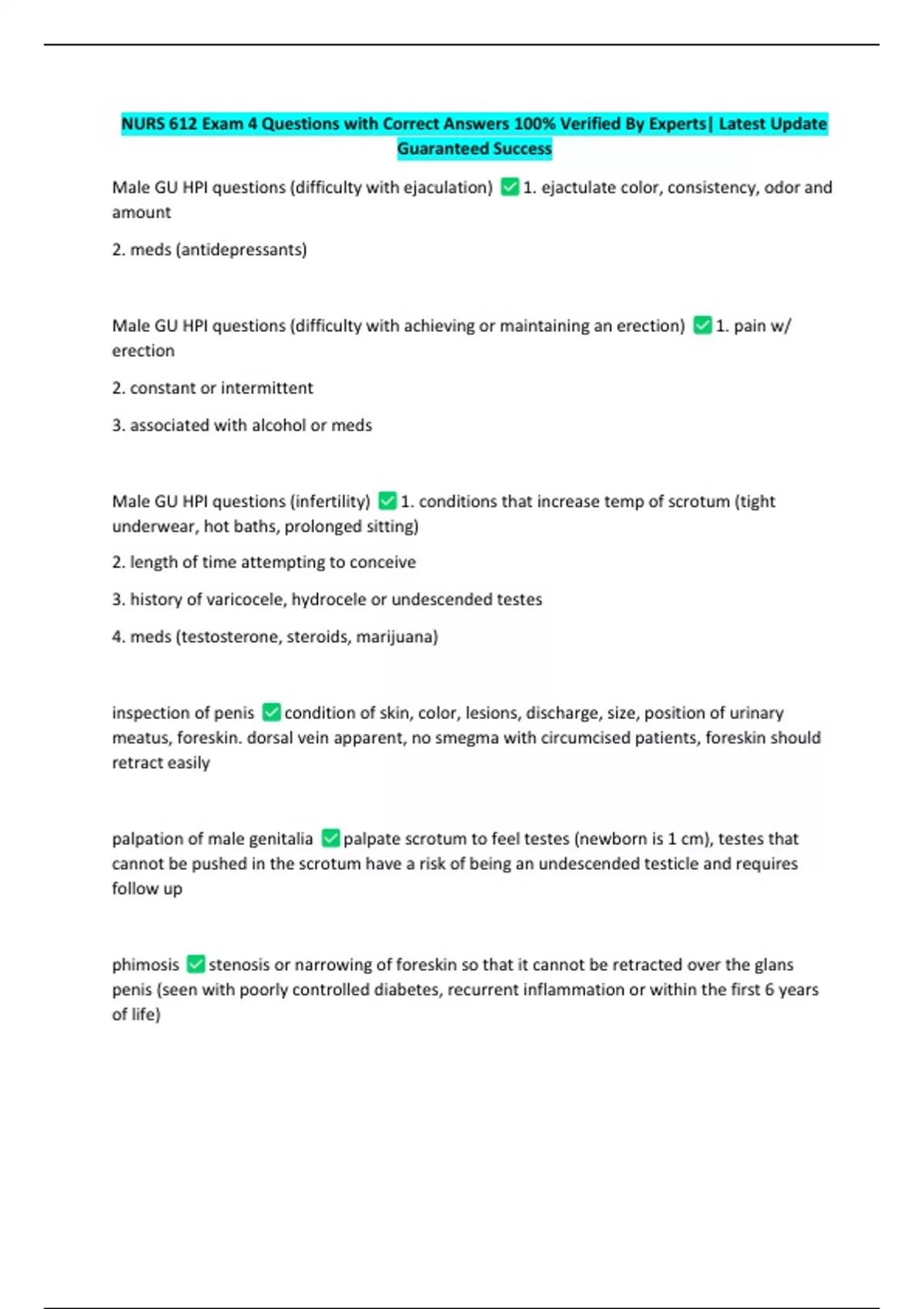 NURS 612 Exam 4 Questions with Correct Answers 100% Verified By Experts| Latest Update