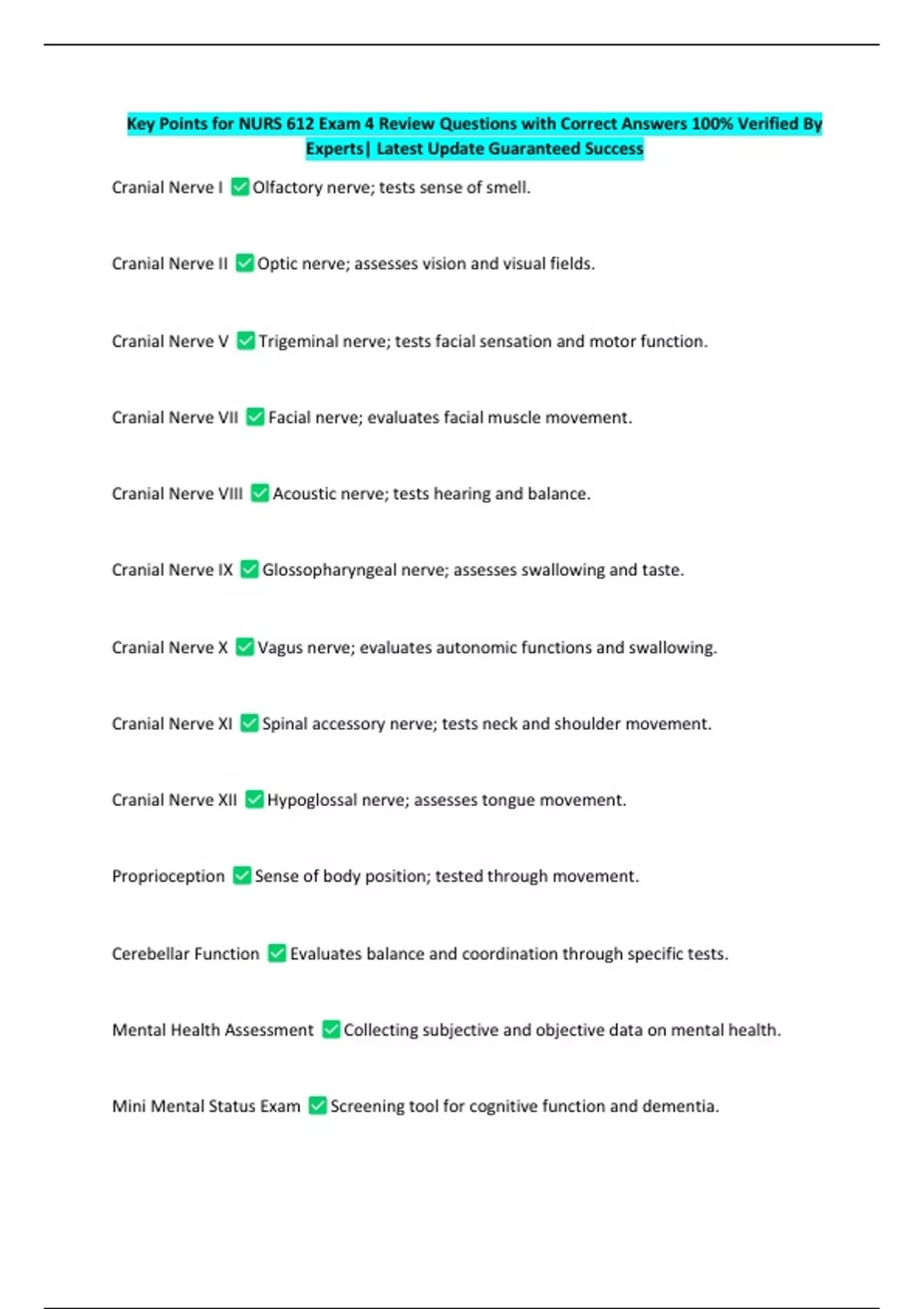 Key Points for NURS 612 Exam 4 Review Questions with Correct Answers 100% Verified By