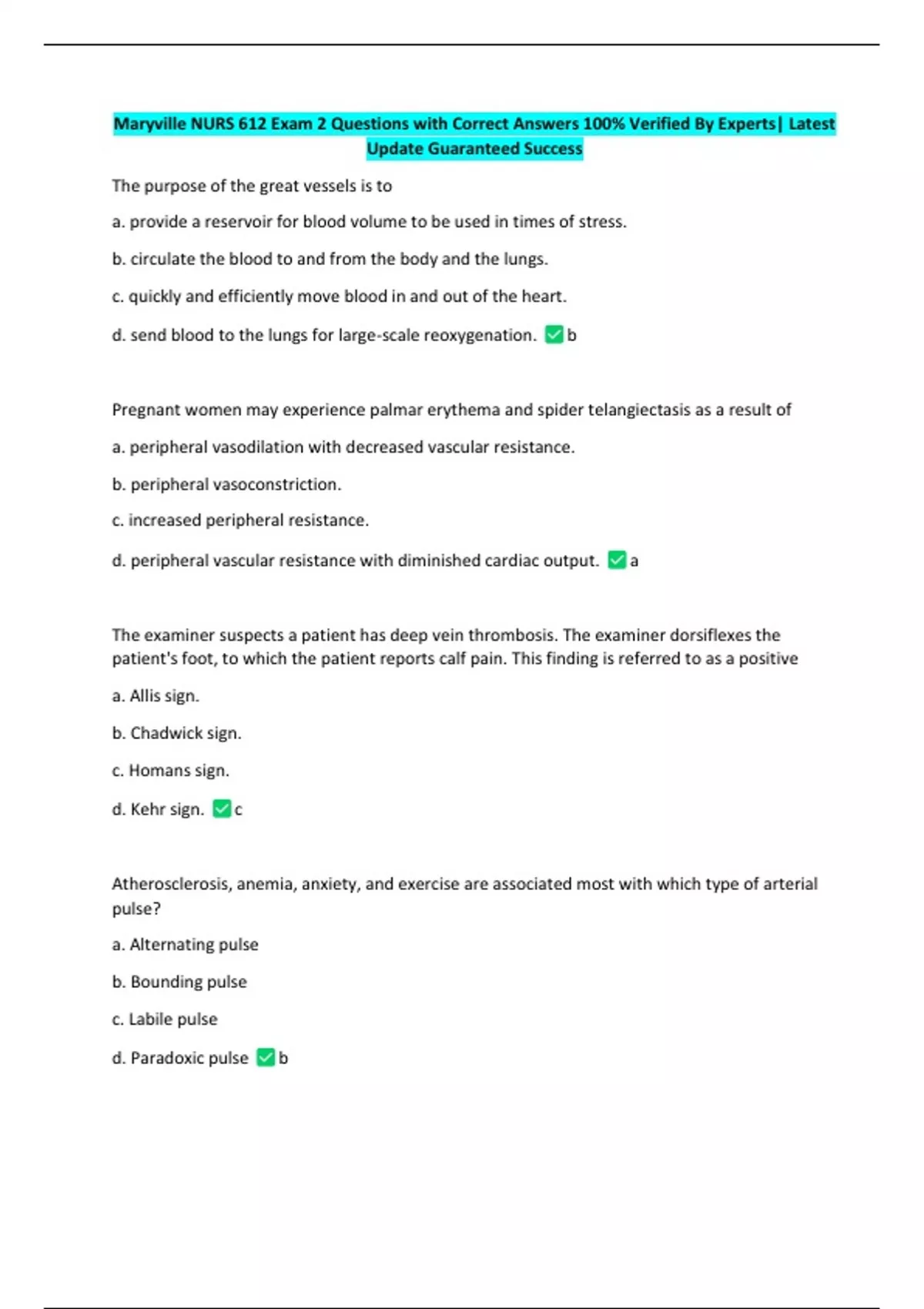 Maryville NURS 612 Exam 2 Questions with Correct Answers 100% Verified By Experts| Latest