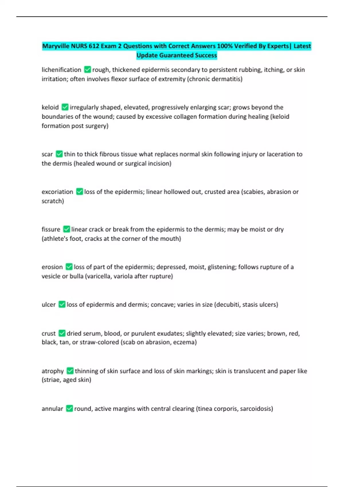 Maryville NURS 612 Exam 2 Questions with Correct Answers 100% Verified By Experts| Latest