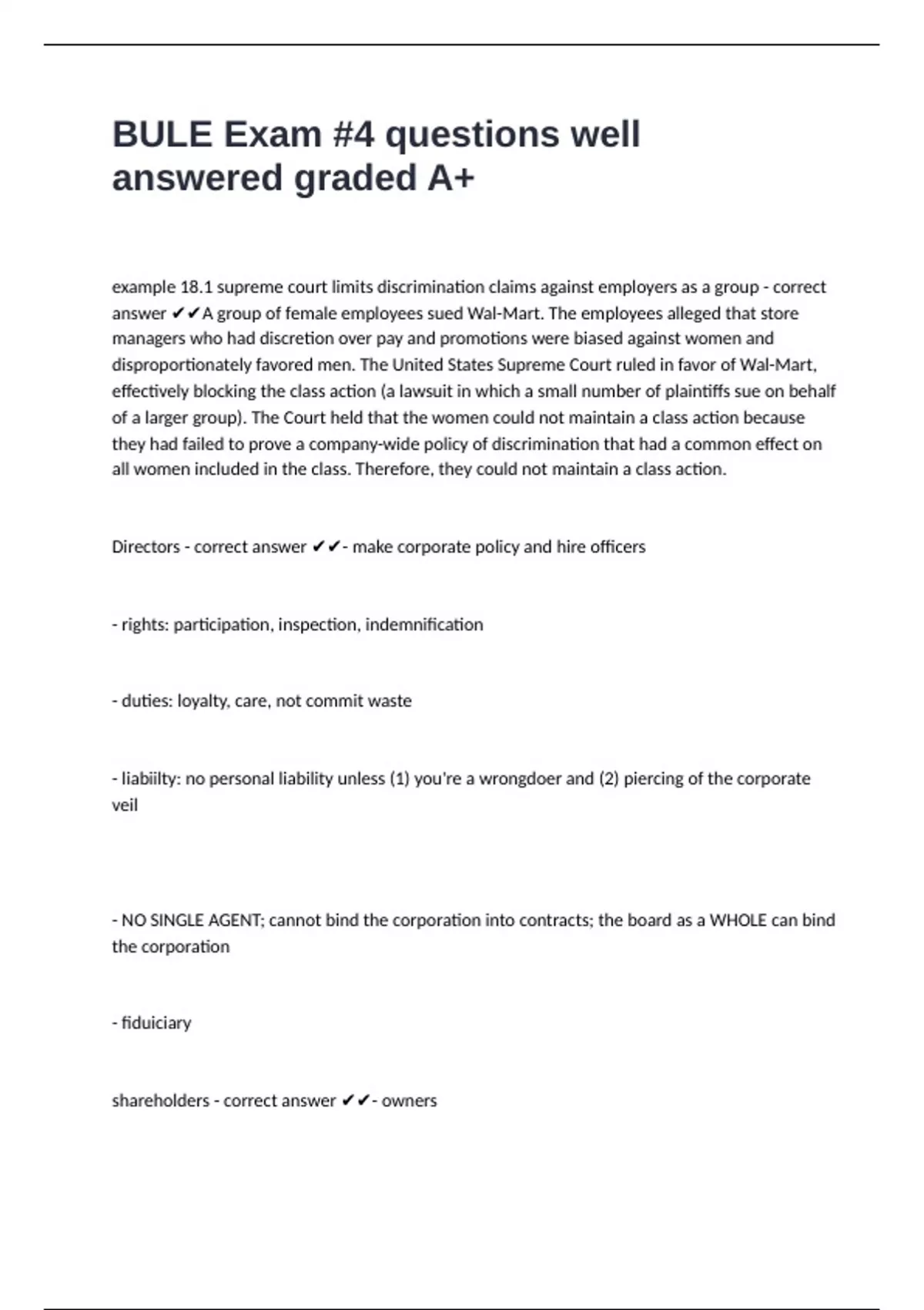 answer ✔✔A group of female employees sued Wal-Mart. The employees alleged that store