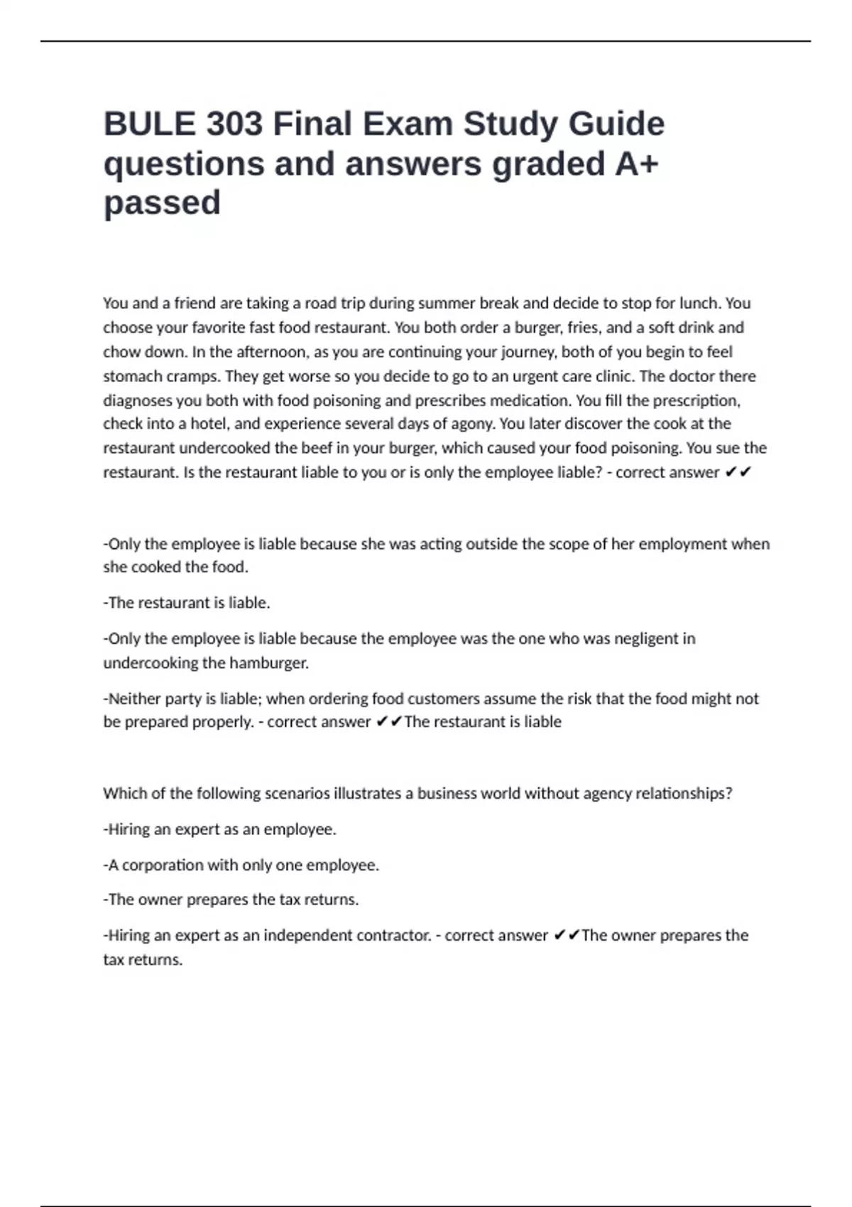 BULE 303 Final Exam Study Guide questions and answers graded A+ passed