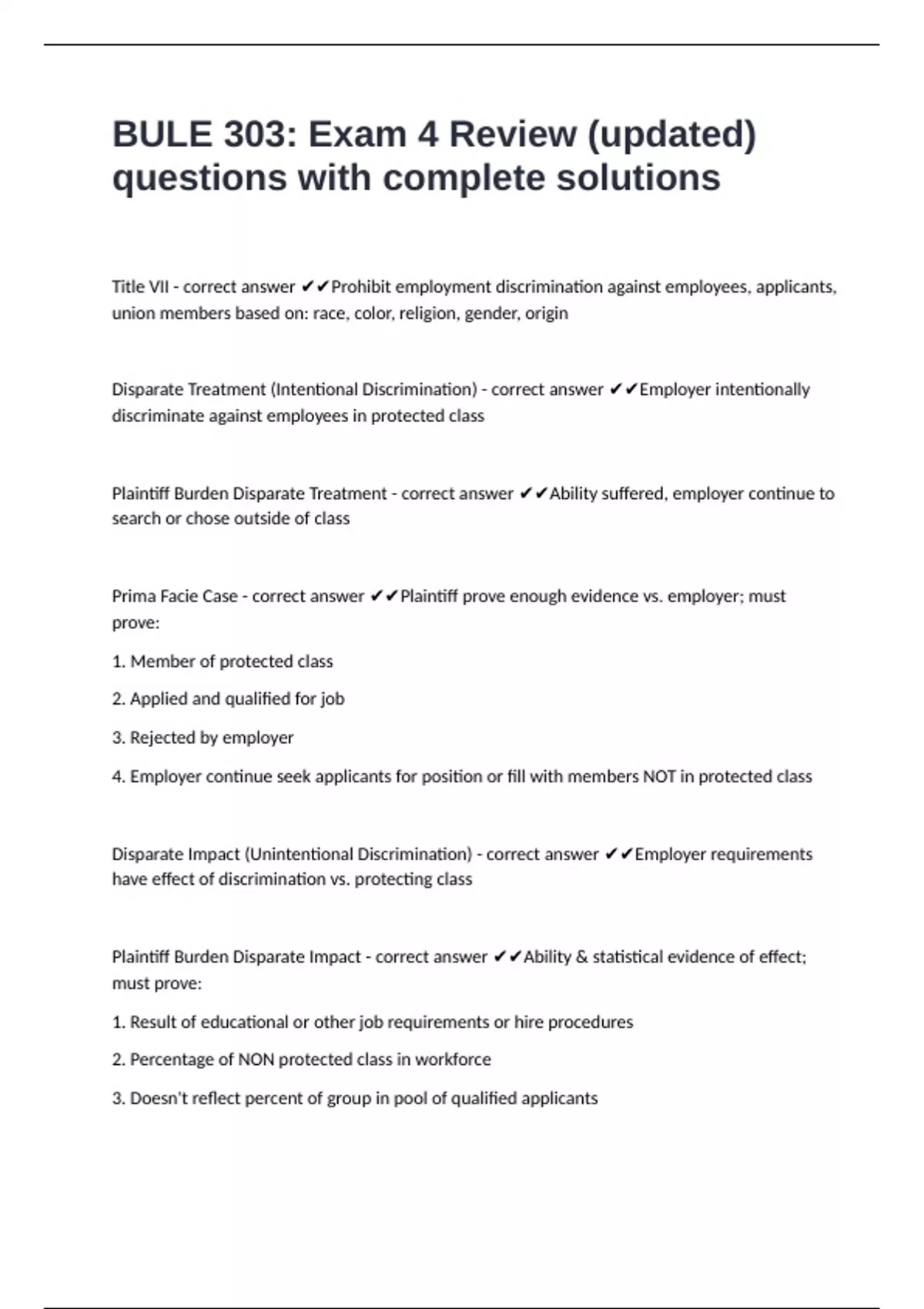 Disparate Treatment (Intentional Discrimination) - correct answer ✔✔Employer intentionally