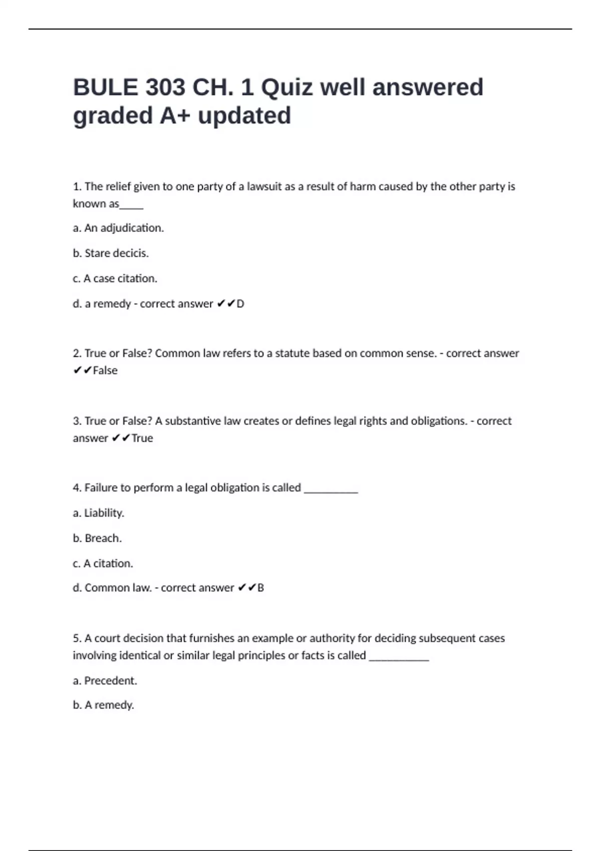 BULE 303 CH. 1 Quiz well answered graded A+ updated