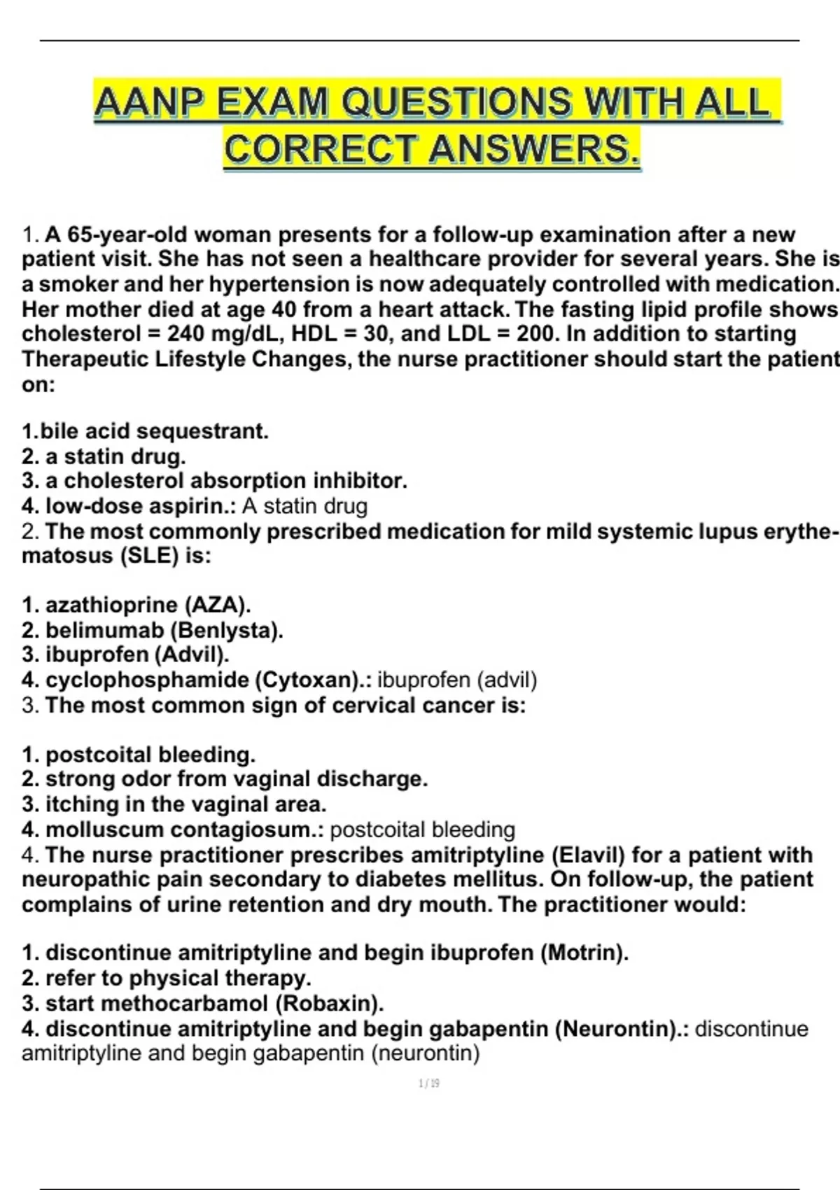1. A 65-year-old woman presents for a follow-up examination after a new