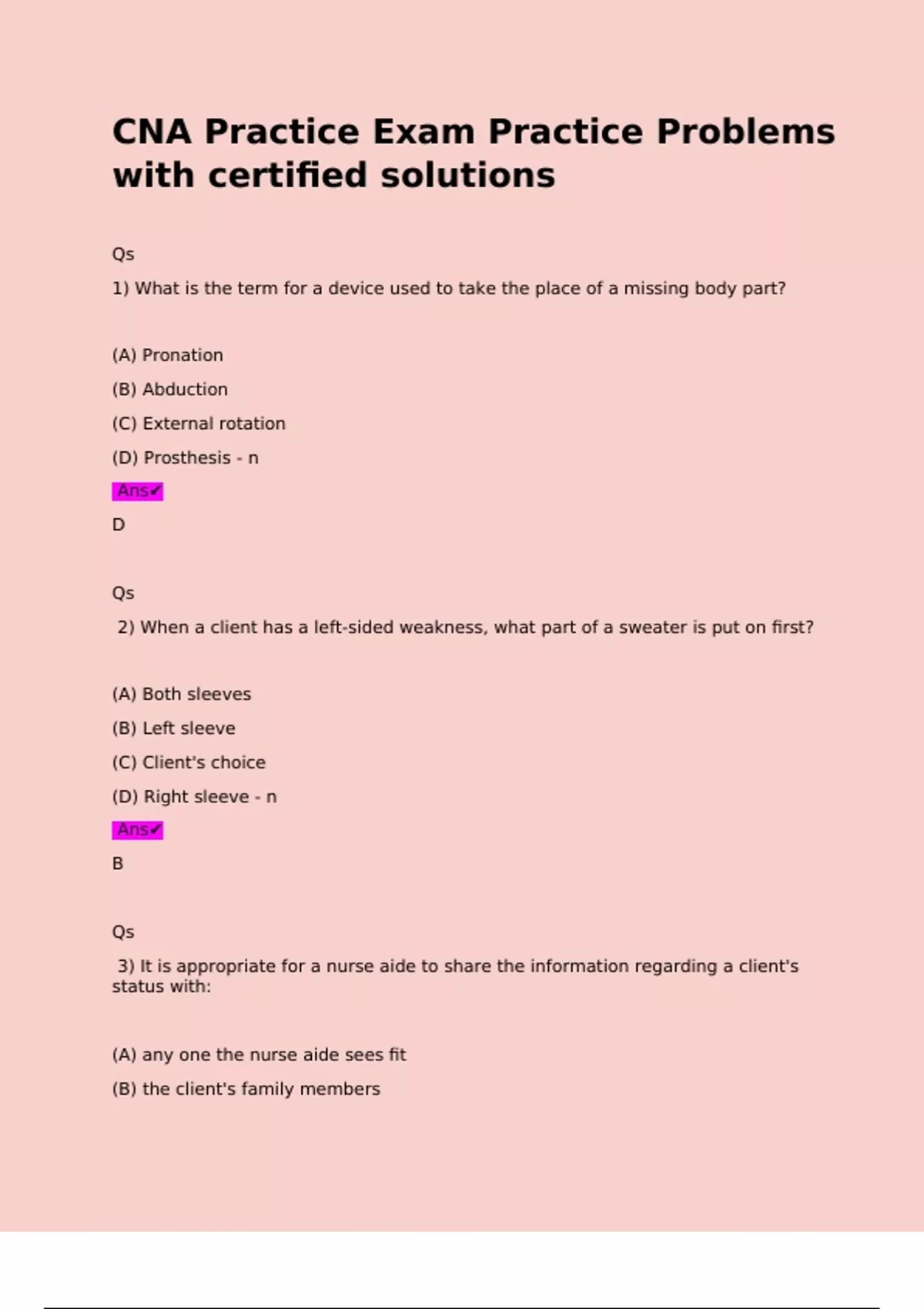 3) It is appropriate for a nurse aide to share the information regarding a client's