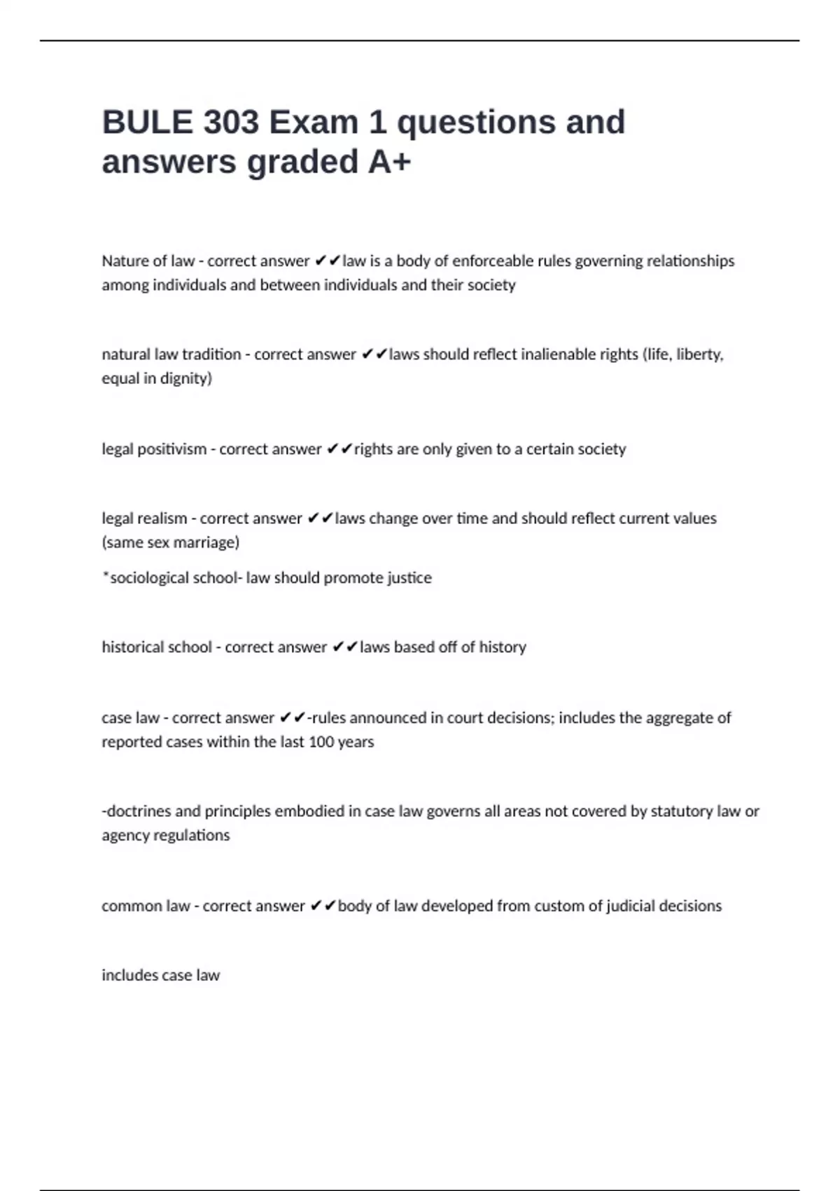 Nature of law - correct answer ✔✔law is a body of enforceable rules governing relationships