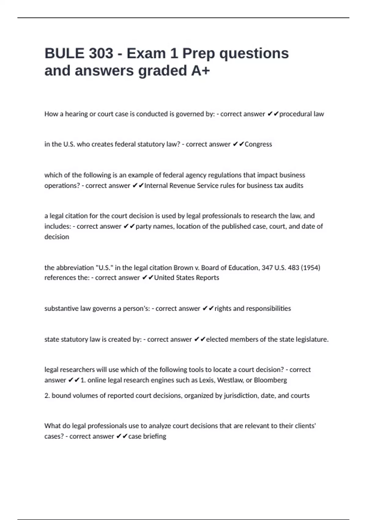 BULE 303 - Exam 1 Prep questions and answers graded A+