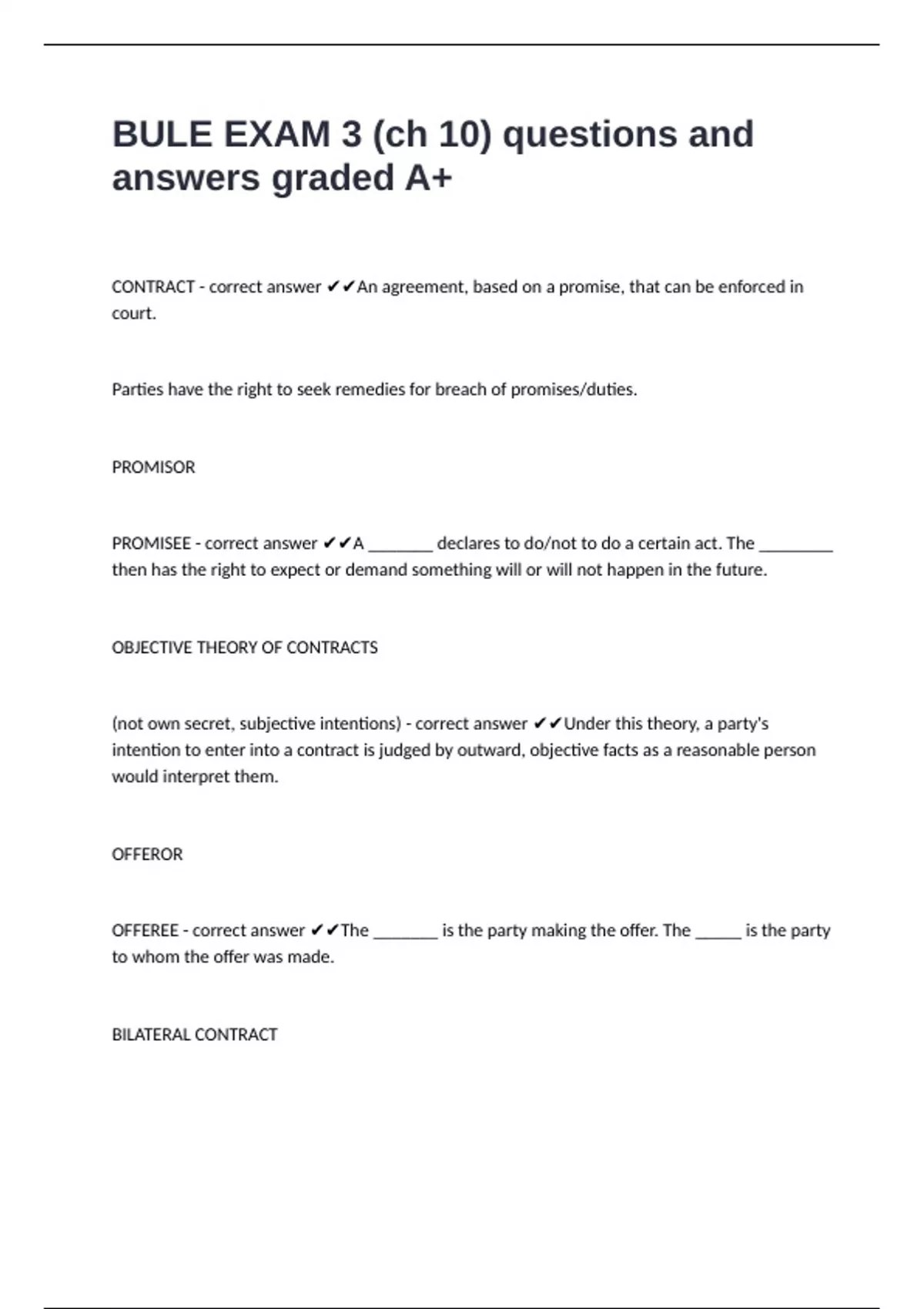 BULE EXAM 3 (ch 10) questions and answers graded A+
