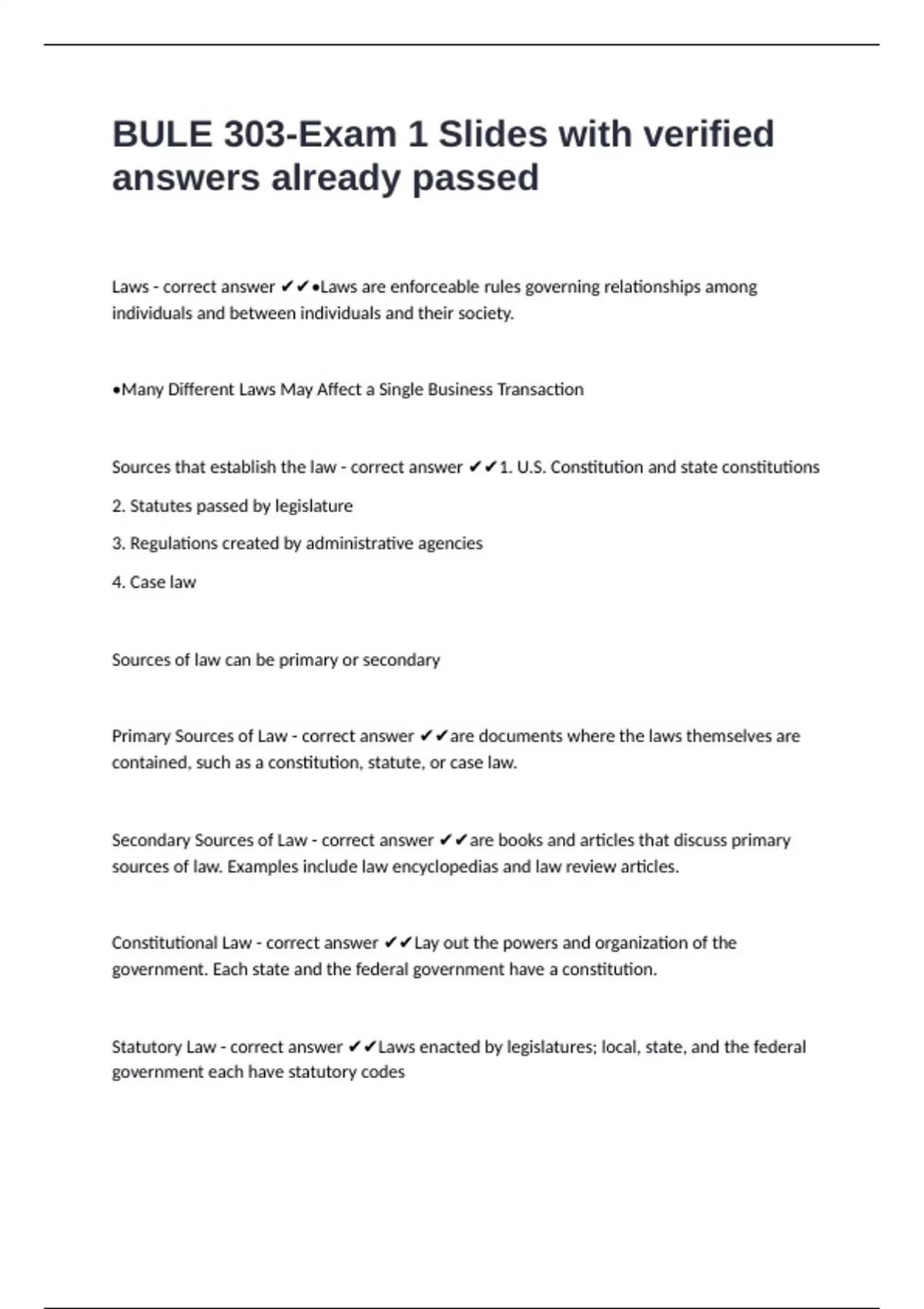 Primary Sources of Law - correct answer ✔✔are documents where the laws themselves are