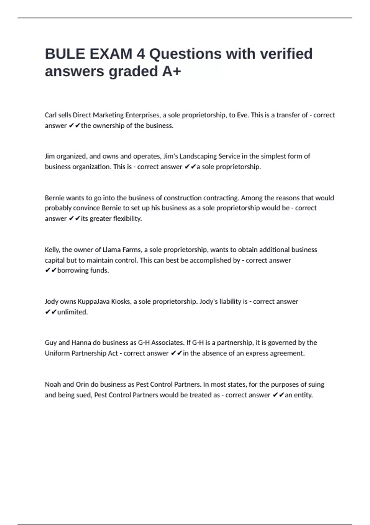 business organization. This is - correct answer ✔✔a sole proprietorship.