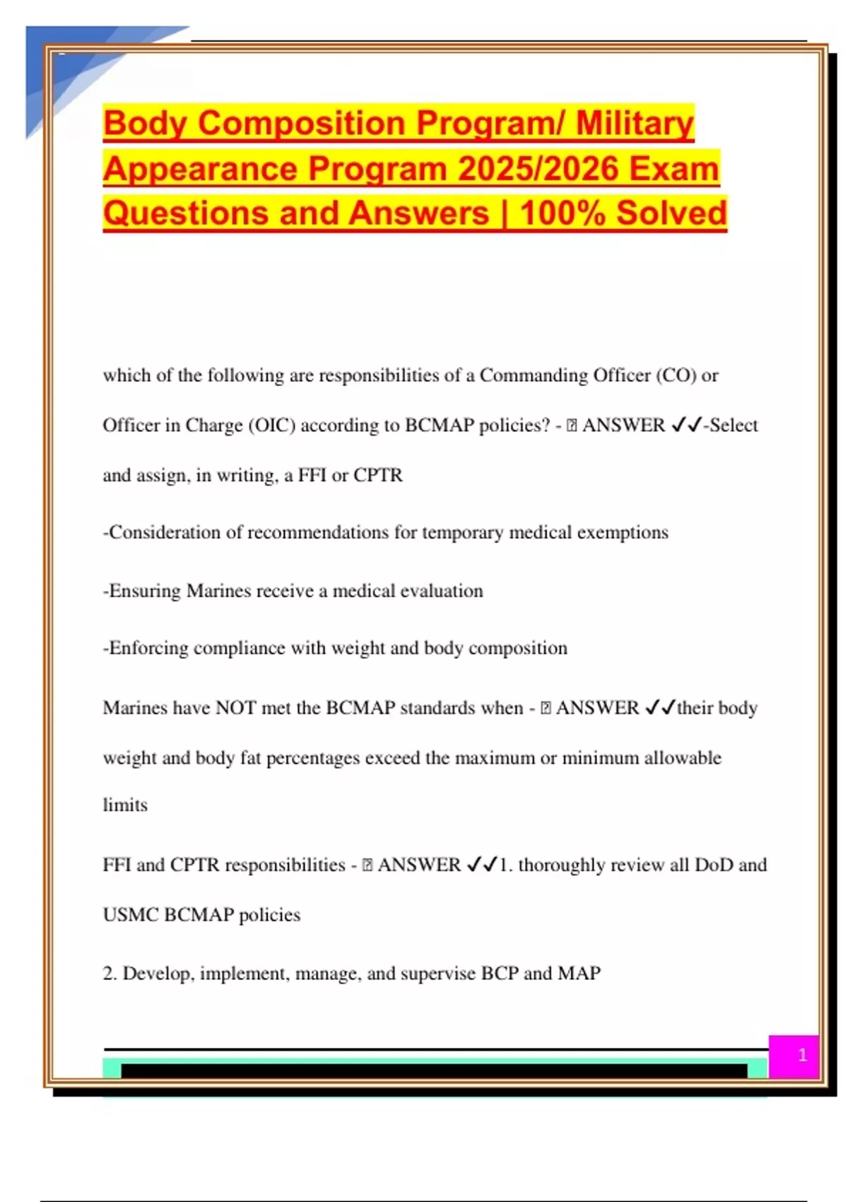 BCMAP responsibilities - 🧠 ANSWER ✔✔-BCP: ensuring Marines are at the