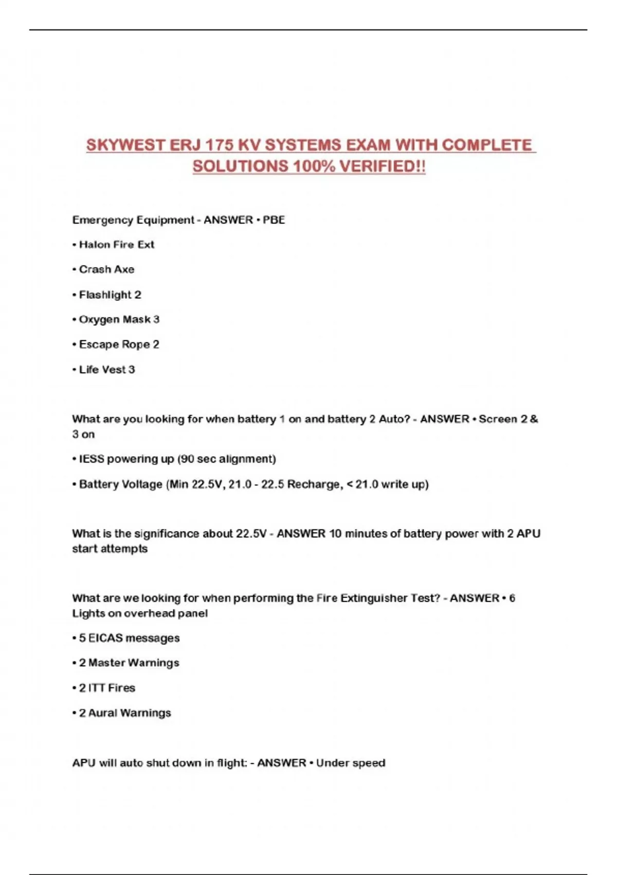 SKYWEST ERJ 175 KV SYSTEMS EXAM WITH COMPLETE SOLUTIONS 100% VERIFIED!!...