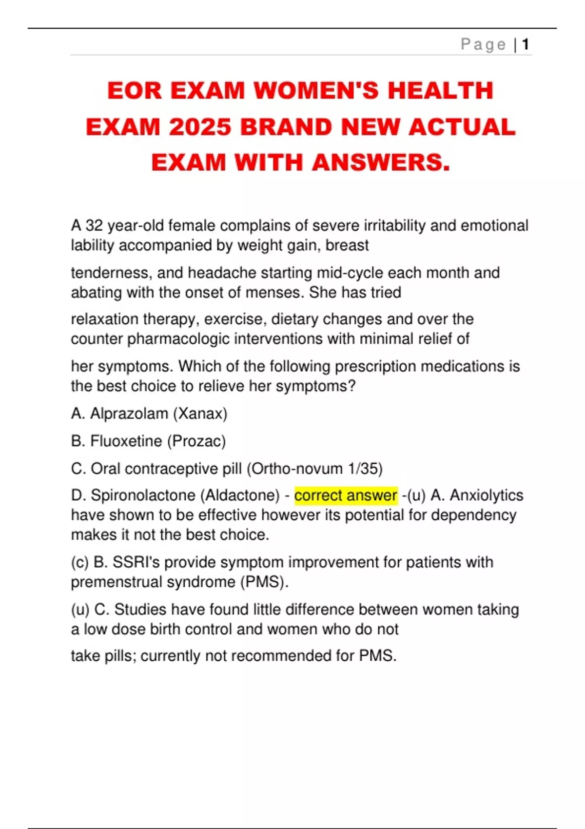 D. Spironolactone (Aldactone) - correct answer -(u) A. Anxiolytics