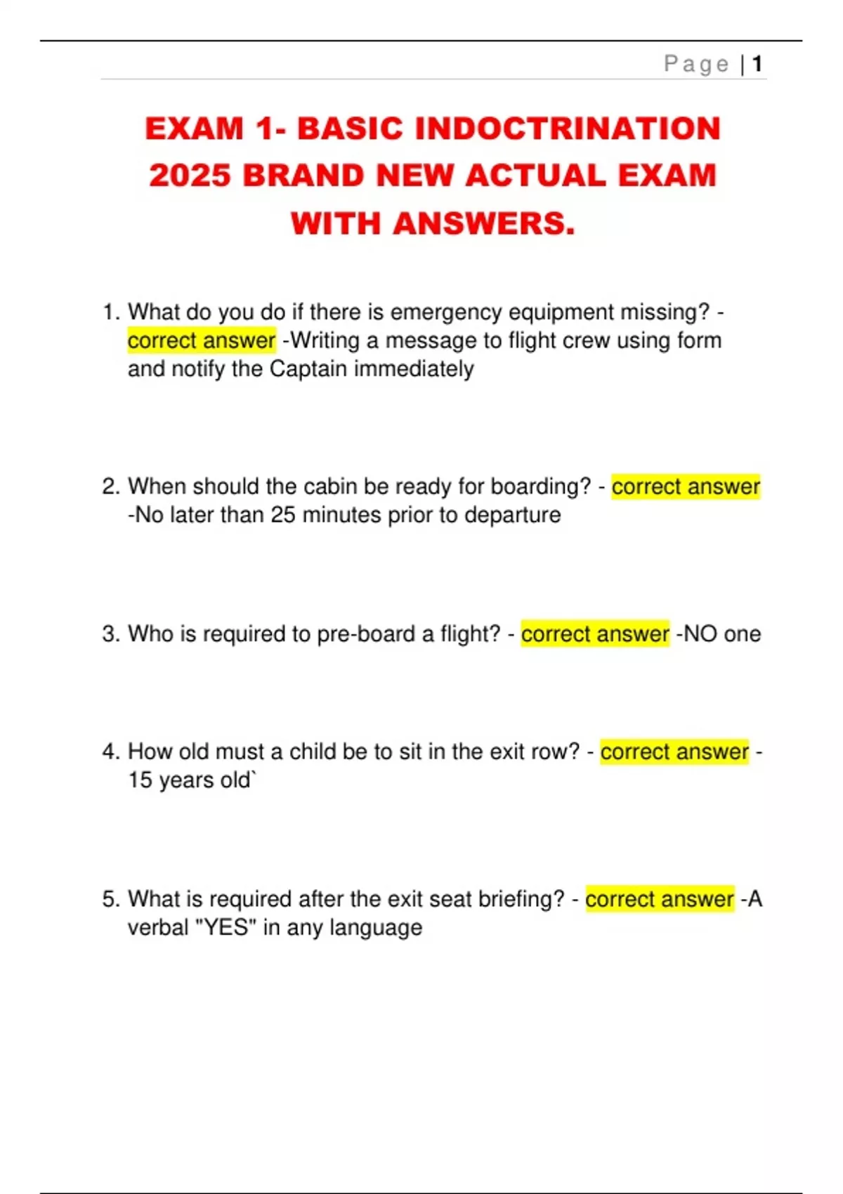 5. What is required after the exit seat briefing? - correct answer -A
