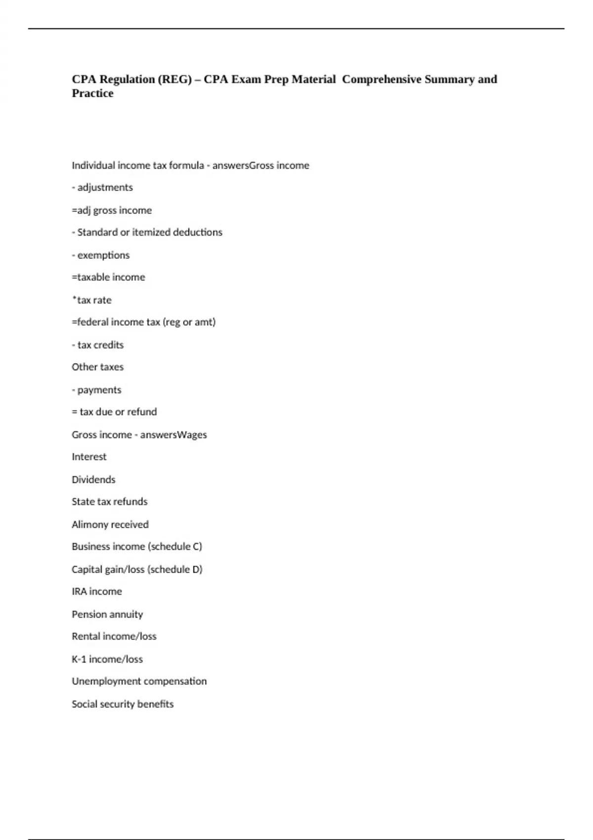 CPA Regulation (REG) – CPA Exam Prep Material Comprehensive Summary and