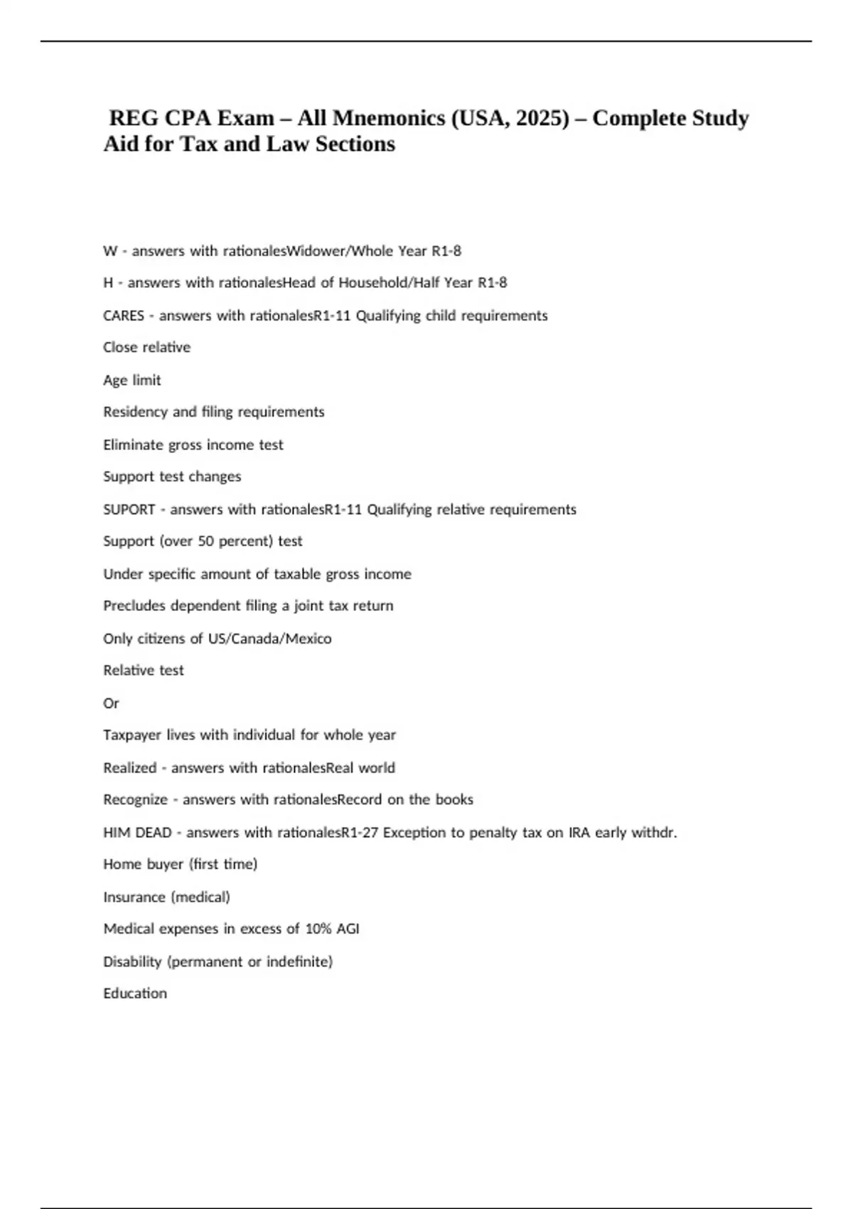 REG CPA Exam – All Mnemonics (USA, 2025) – Complete Study Aid for Tax and Law Sections