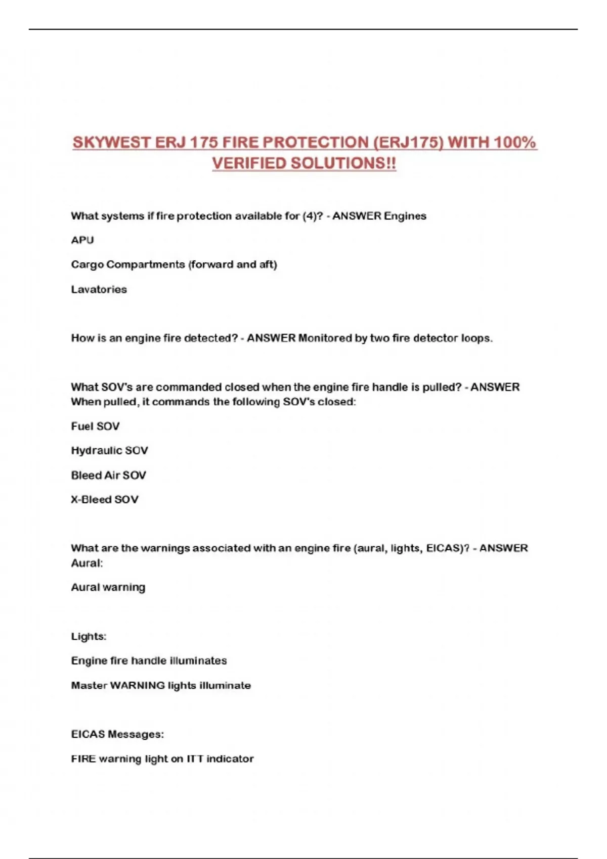 SKYWEST ERJ 175 FIRE PROTECTION (ERJ175) WITH 100% VERIFIED SOLUTIONS!!...