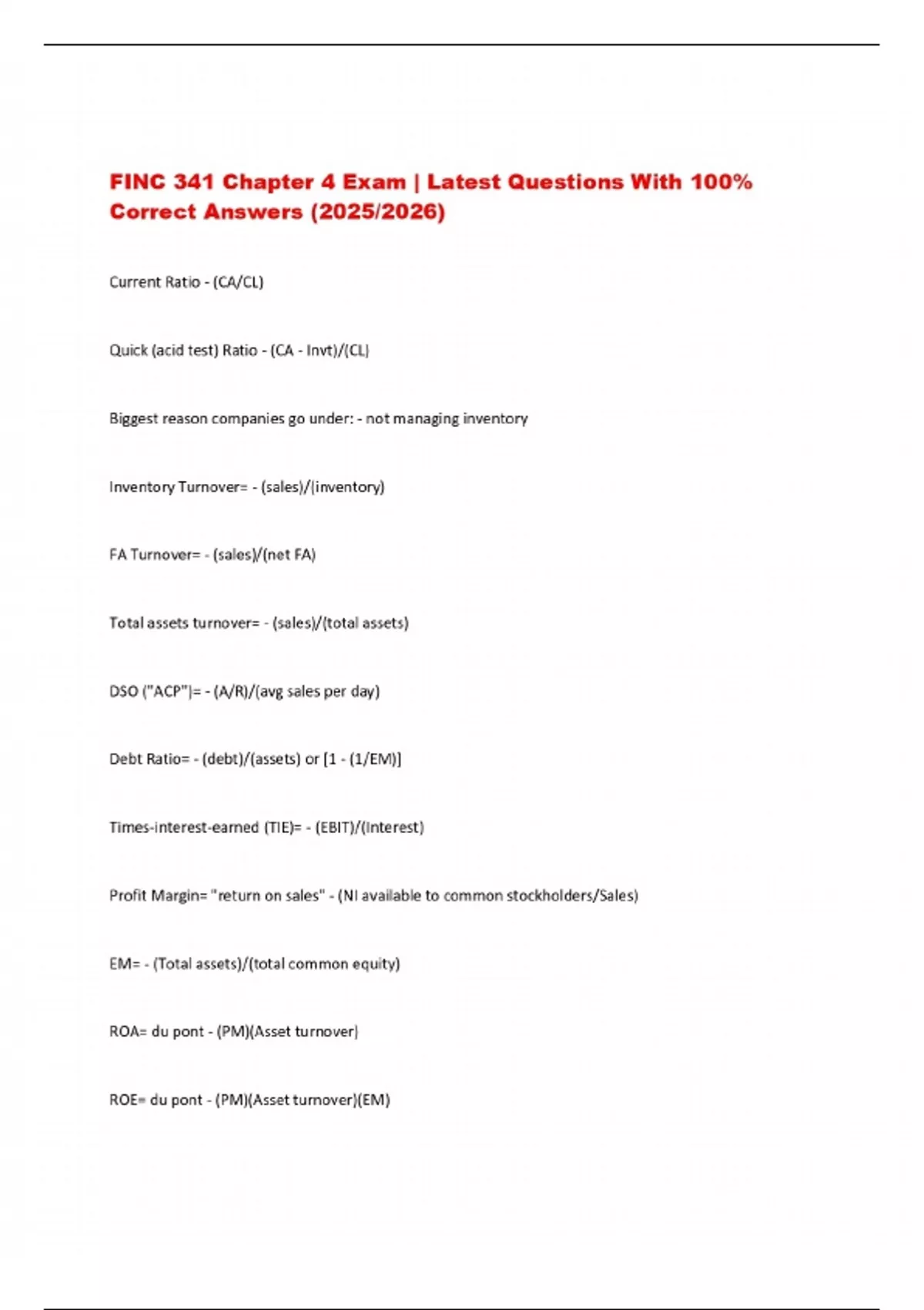 FINC 341 Chapter 4 Exam | Latest Questions With 100% Correct Answers (2025/2026)