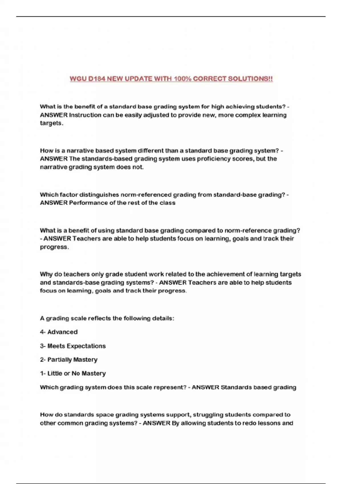 WGU D184 NEW UPDATE WITH 100% CORRECT SOLUTIONS!!